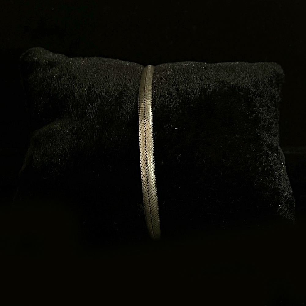 Store the bracelet in an airtight pouch when not in use. Avoid exposure to water perfumes and chemicals. Clean gently using a soft microfiber cloth. Remove before bathing or swimming to preserve surface integrity.