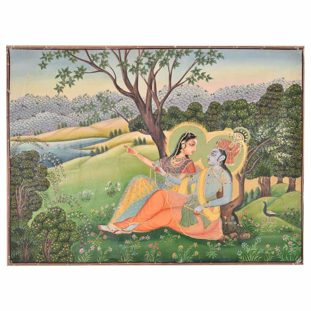 • Krishnagarh painting of Lord Krishna and Radha in a beaitiful garden