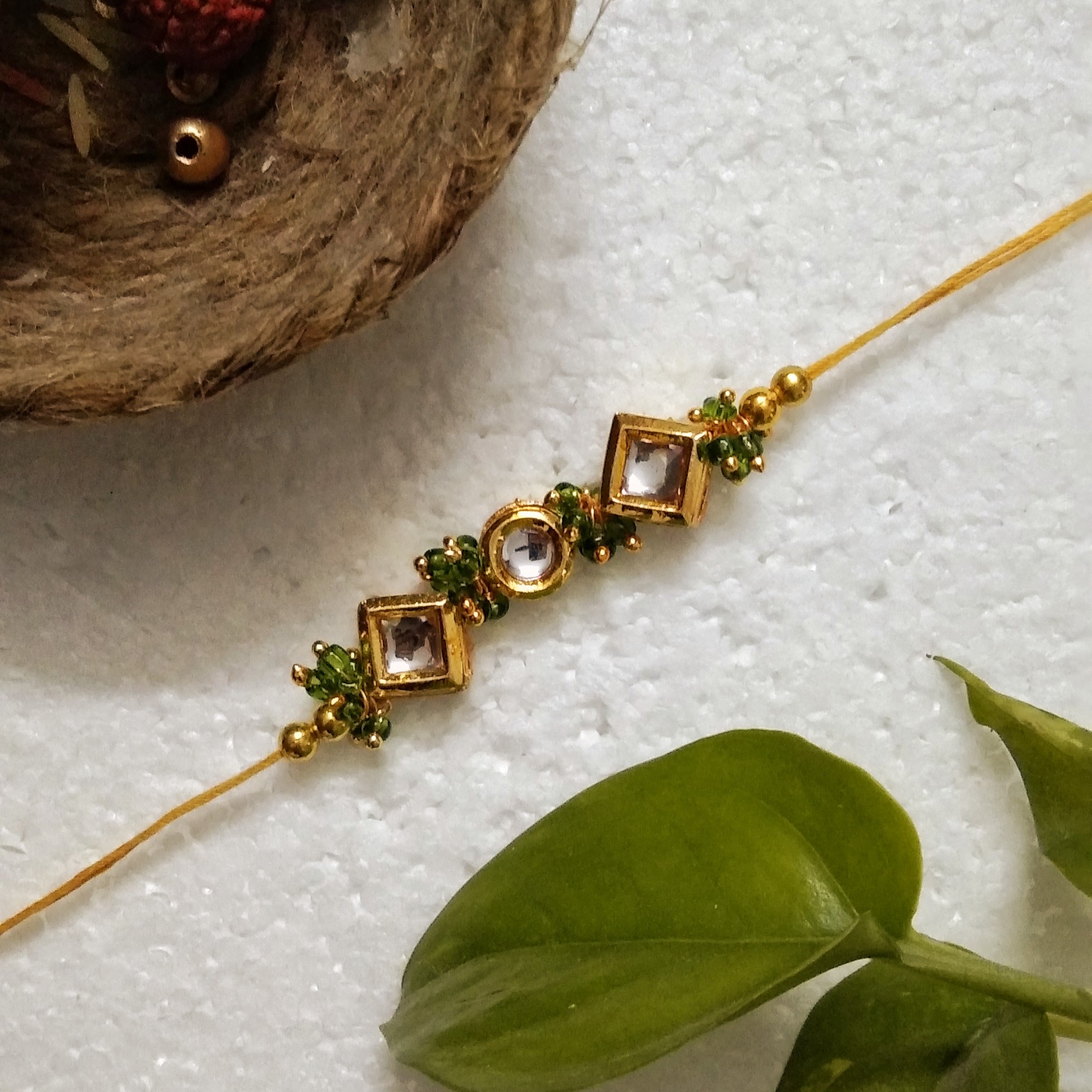 • Kundan Beads, Acrylic, Metal, Wooden Beads Rakhi for Festive Gifting