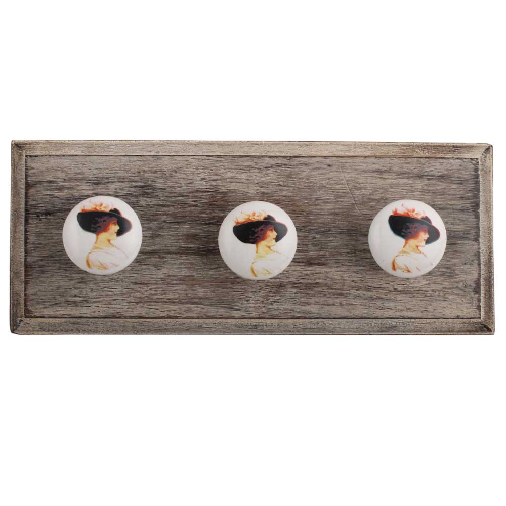 Lady Ceramic Flat Wooden Hook. A Perfect Complement to the Soft Tone of the Wood are these White Traditional Hat & Coat Hook Made of Genuine Porcelain and Brass. It can be use to Hang Jewellery, Leashes, Towels, Scarves, Light Weight Sweaters, Caps Etc.