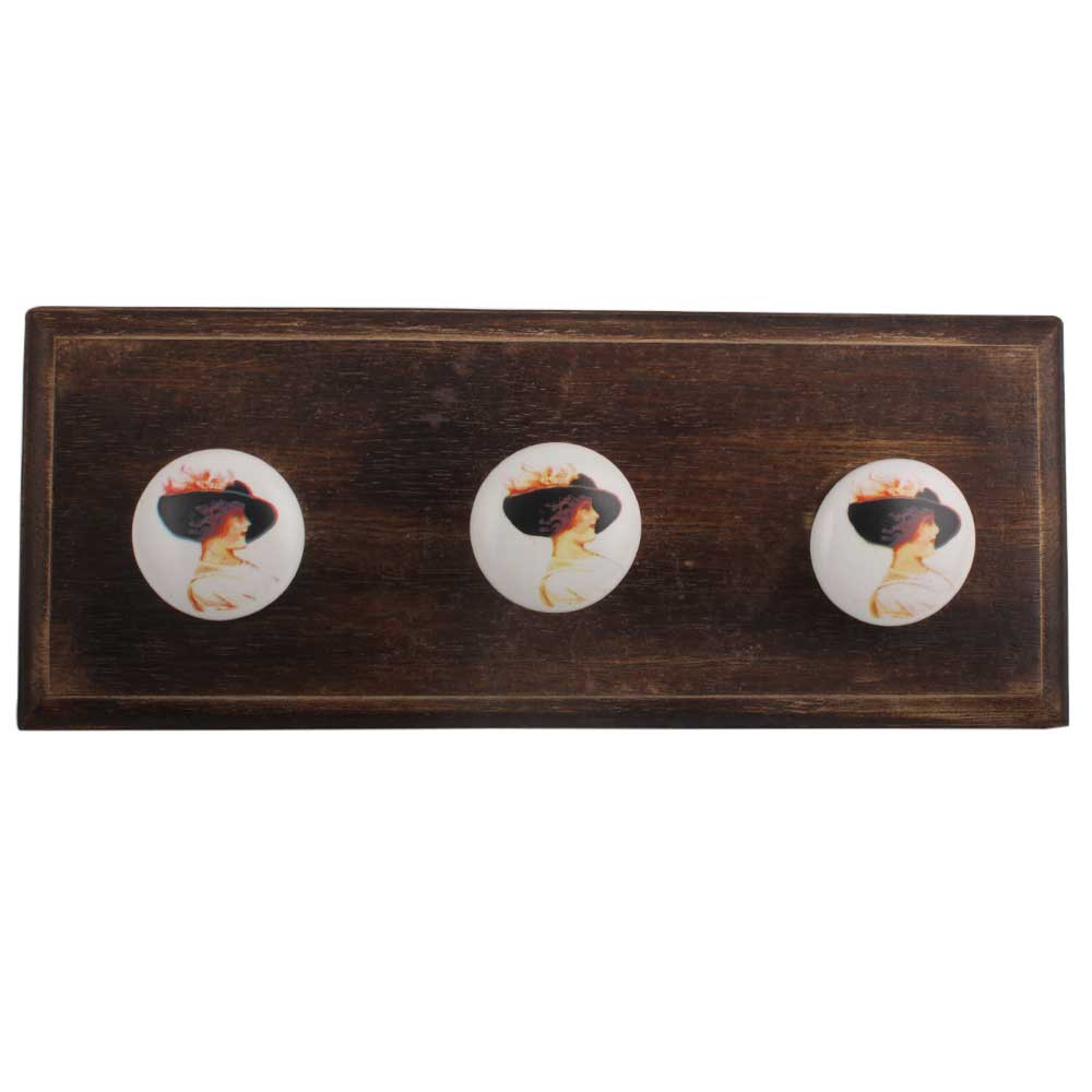 Lady Ceramic Flat Wooden Hook. A Perfect Complement to the Soft Tone of the Wood are these White Traditional Hat & Coat Hook Made of Genuine Porcelain and Brass. It can be use to Hang Jewellery, Leashes, Towels, Scarves, Light Weight Sweaters, Caps Etc.