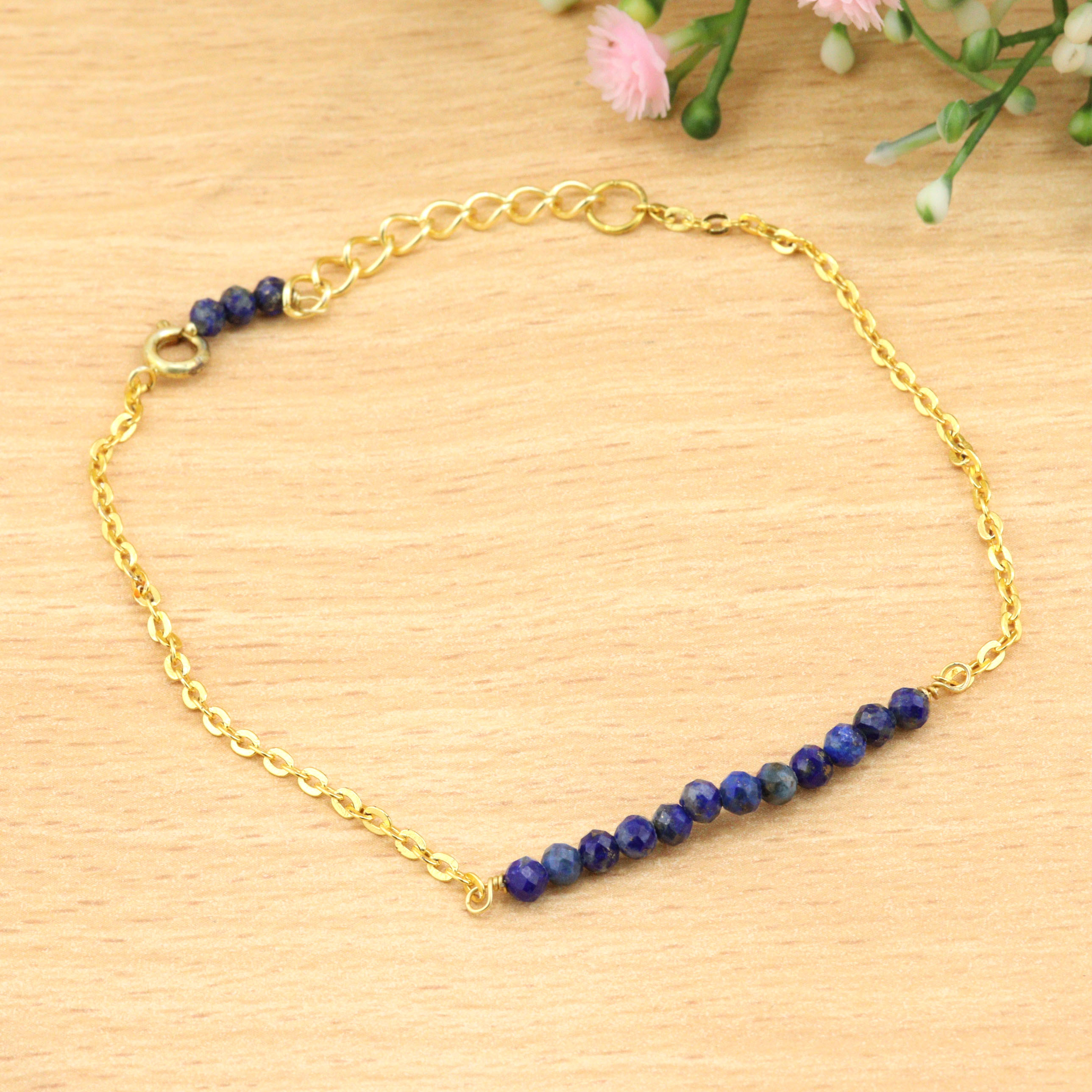 This Lapis Beaded Dainty Minimalist Bracelet blends the deep celestial blue of lapis beads with the warm radiance of 22k gold plated brass. Handcrafted by skilled artisans, it offers an elegant, understated design ideal for women who love gemstone jewelry with a refined, modern touch. Lightweight, meaningful, and effortlessly stylish, it easily transitions from daily wear to special occasions.