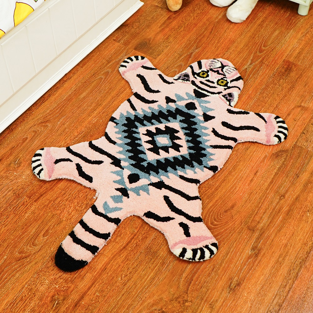 A fun rug in the shape of an animal is called Rug Mahee Majestic Tiger Rug . This warm, plush, and hand-tufted rug is thick. The ideal carpet for a child's room. This hand-tufted rug in the contemporary style was skillfully created with premium wool by master rug craftsmen. This rug has a cotton backing and was woven in India using only wool. Place this sophisticated carpet in your living room and bedroom, and prepare to receive many praises from your visitors.