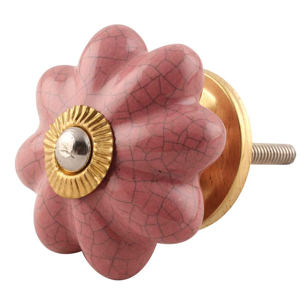 Lavender Crackle Ceramic Melon Cabinet Knob