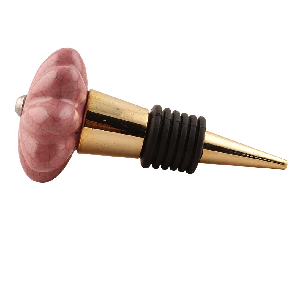 Lavender Crackle Ceramic Melon Wine Stopper in Golden Fitting. Zinc Alloy Wine Bottle Stopper with Attractive Jute Bag Packaging.