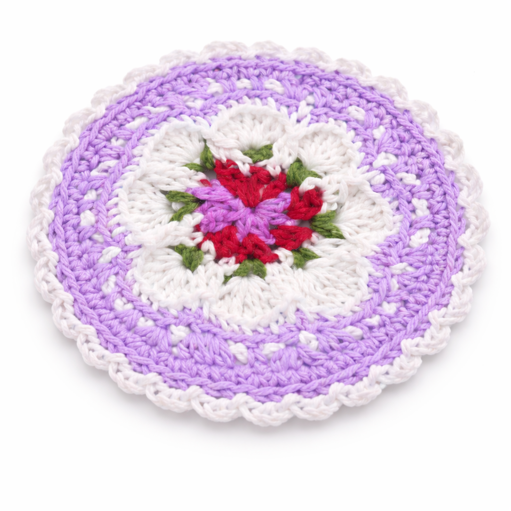 • Lavender Floral Crochet Cotton Yarn Handmade Doily
