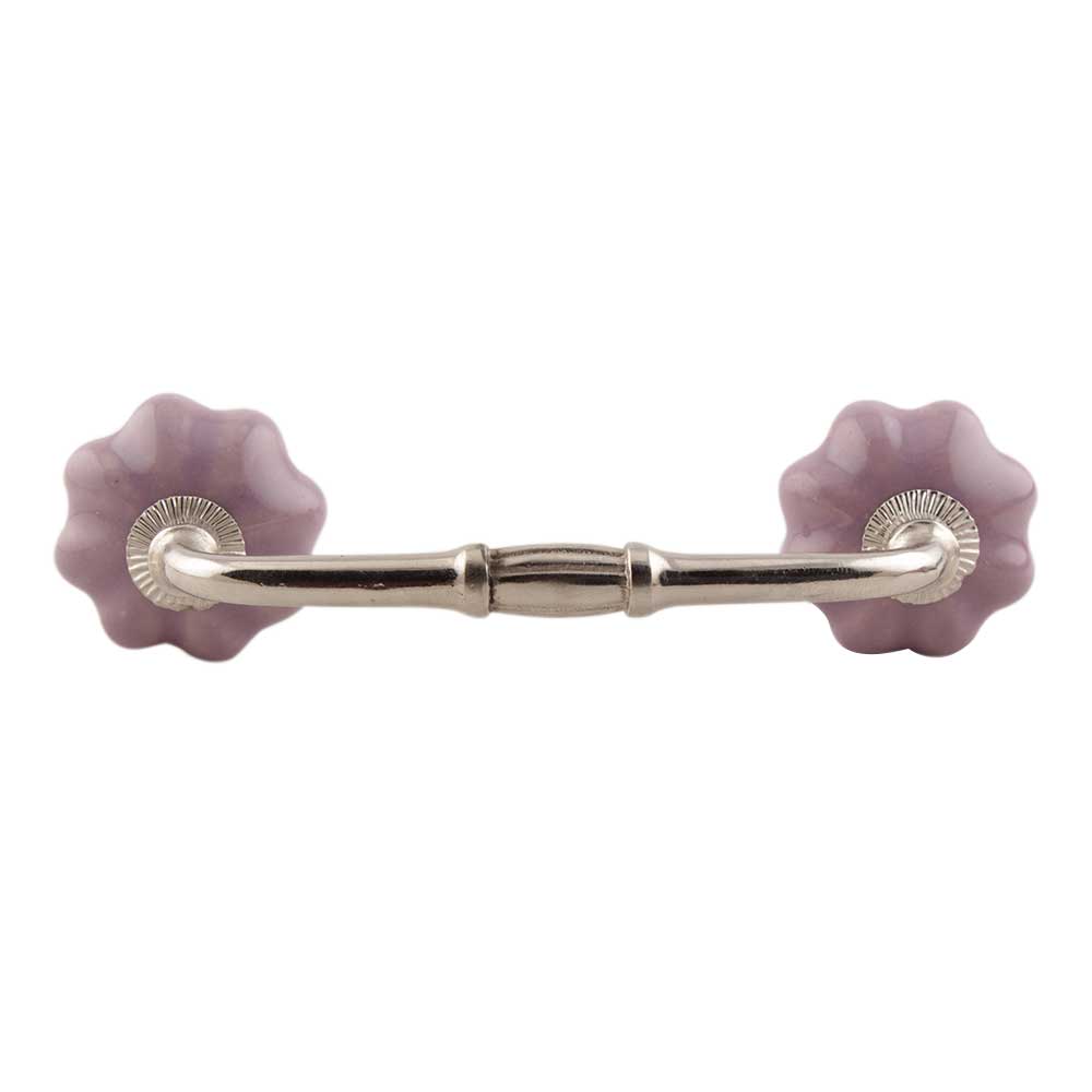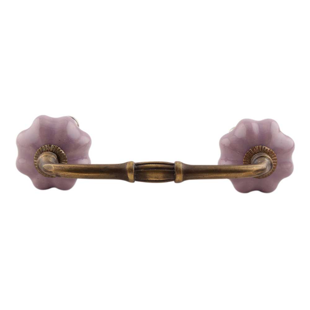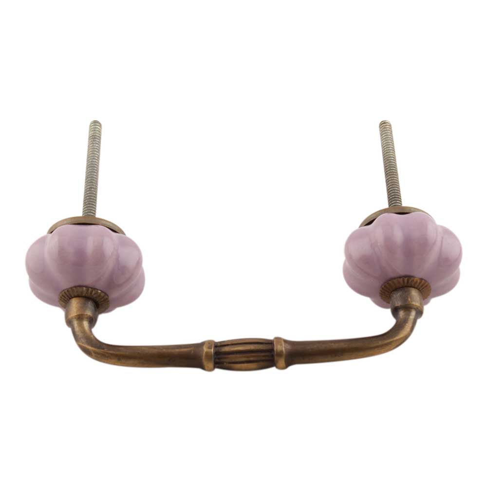 Indianshelf.com for bulk/wholesale orders.Indianshelf.us for personal purchases.Add a splash of color and a hint of vintage charm to your furniture with the Lavender Medium Ceramic Melon Bridge Handle. The lovely lavender shade paired with the melon-shaped design creates a perfect mix of elegance and practicality. Made from high-quality ceramic, this handle is perfect for giving a refreshing touch to cabinets, drawers, or dressers.