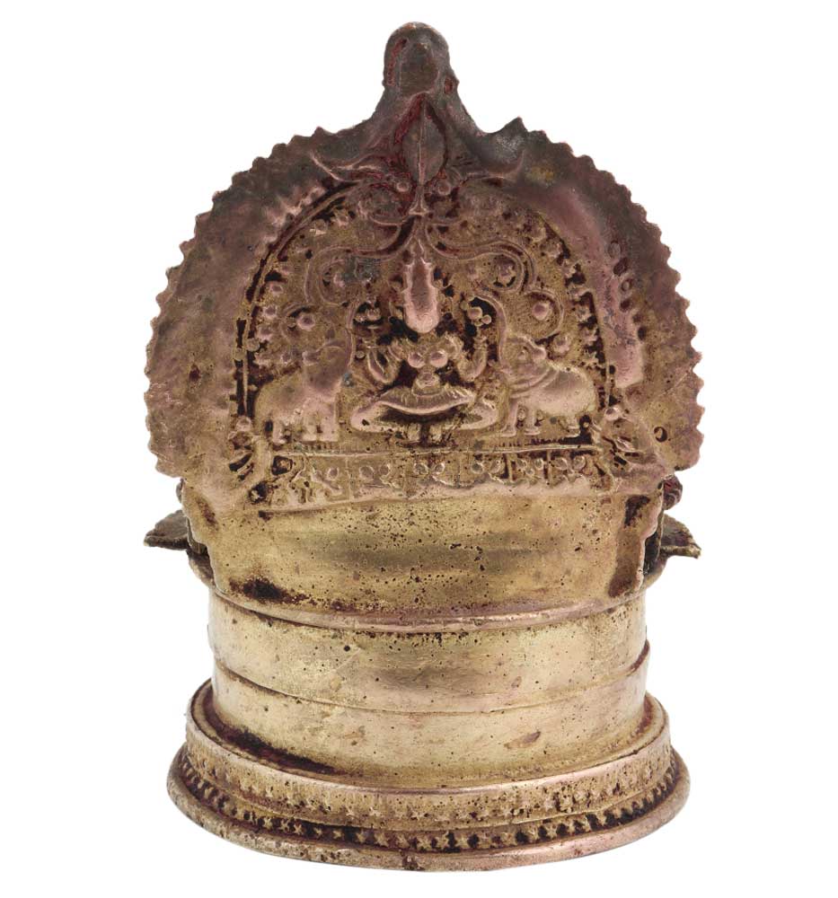 Brass Oil Lamp with intricate designs and goddess laxmi and two jumbo elephants on her either side. Crafts with perfection this golden brass oil lamp is a perfect gift for special occasions.
