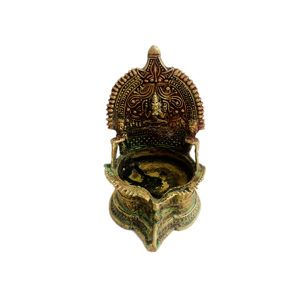 Laxmi Brass Oil Lamp. It is Made by Lost Wax Process. Adds Spiritual Flavor to Your Decor. Vegetable Oil, Mustard Oil or Desi Ghee can be Use to Light the Lamp with Cotton Wicks.