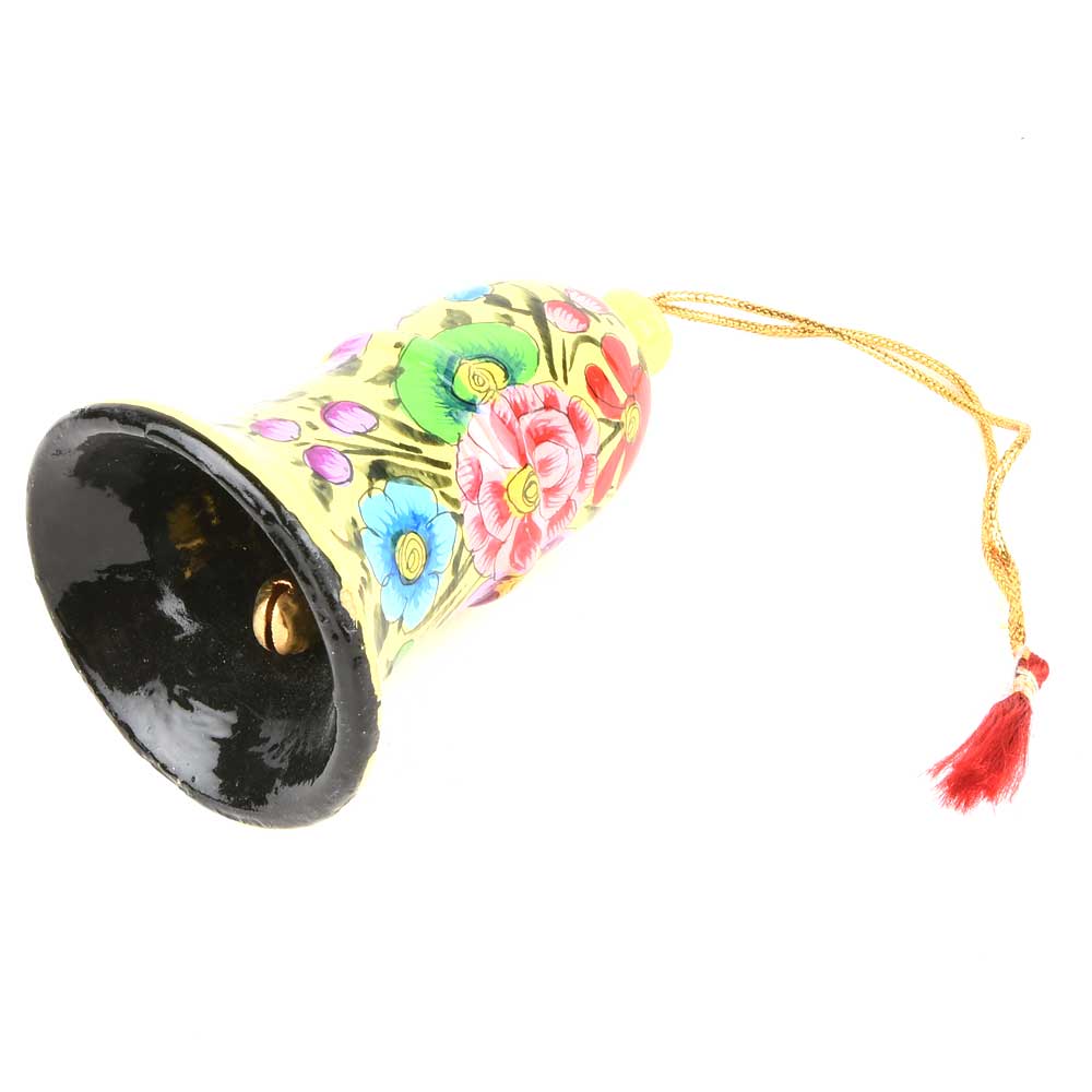 Lemon Yellow Hand Painted Colorful Floral Hanging Paper Mache Bell