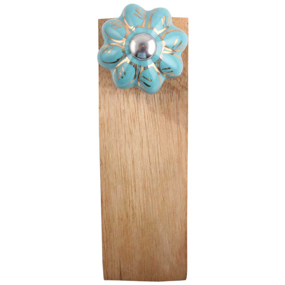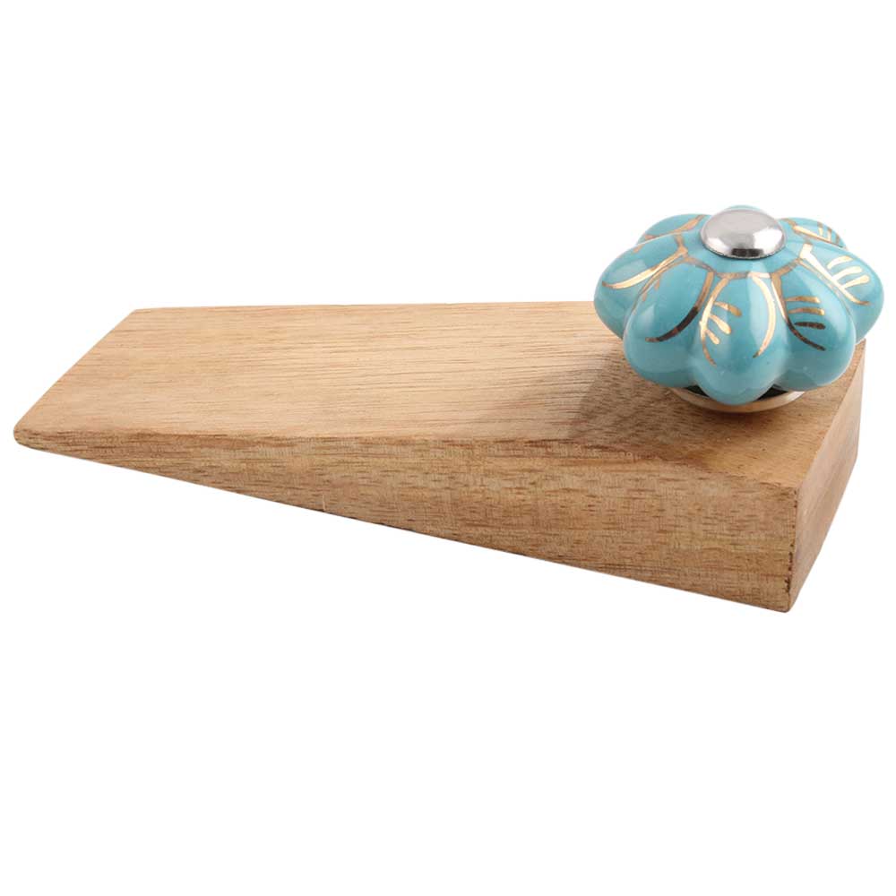Handmade Ceramic and Wooden Door Stopper.Wooden Door Stopper with a Ceramic Knob to Carry it Easily. This Wooden Door Stopper has Glue Dots under it to Ensure that it does not Slip. It is Handmade by the Craftsmen of India and this Innovative Door Stopper won't Disappoint You.