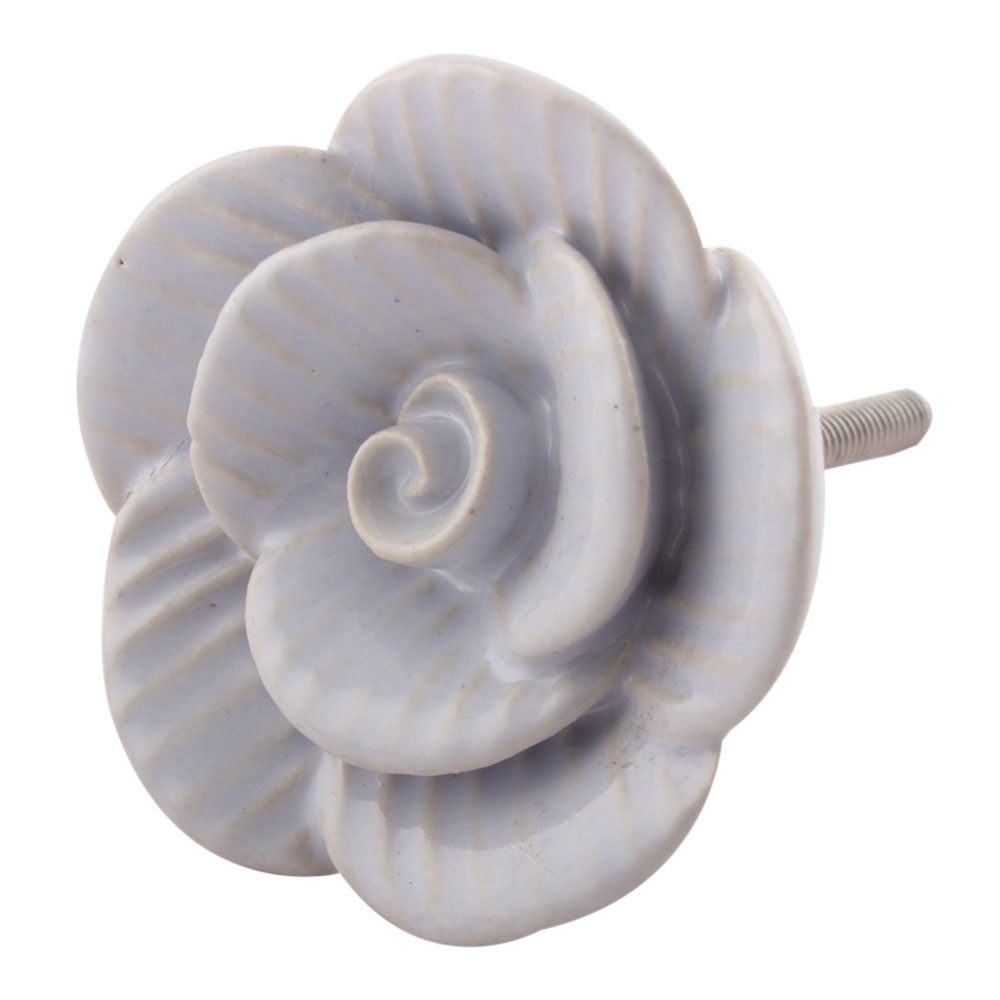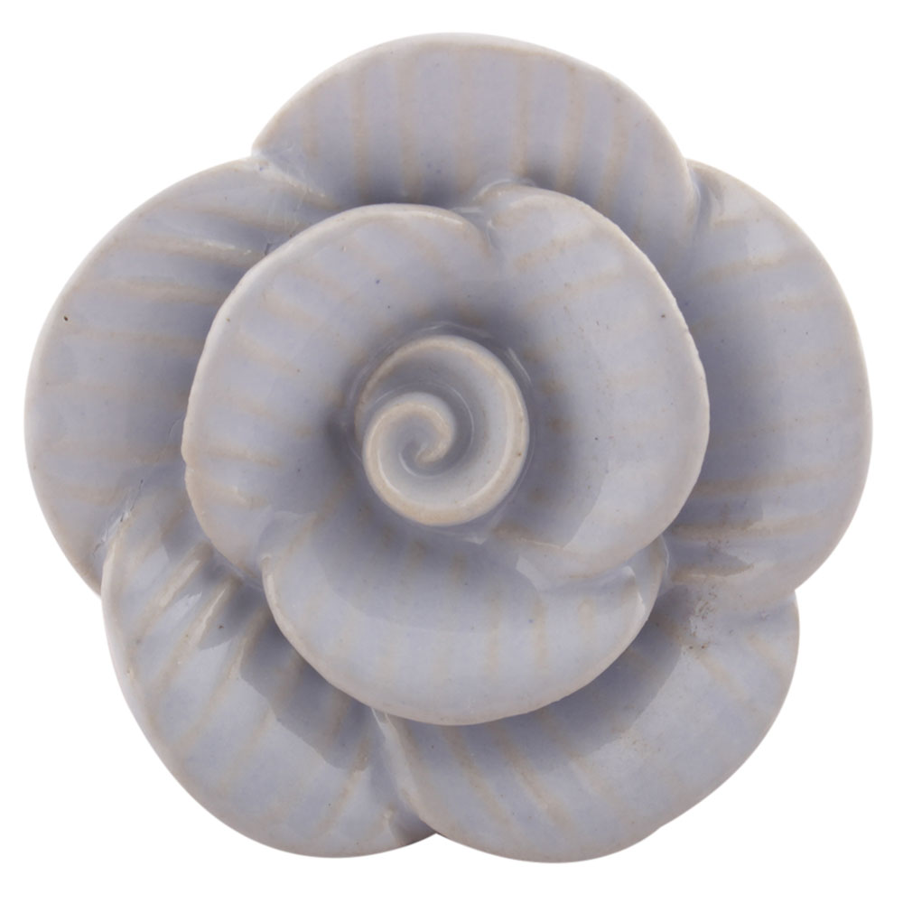 Light Blue Medium Rose Flower Ceramic Dresser Knob