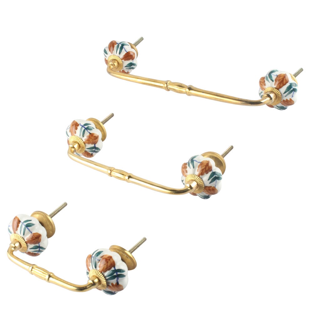 Light Caramel Plant Ceramic Bridge Handle. Ideal for Drawer, Dresser, Cabinet, Wardrobe, Cupboard and Almirah.