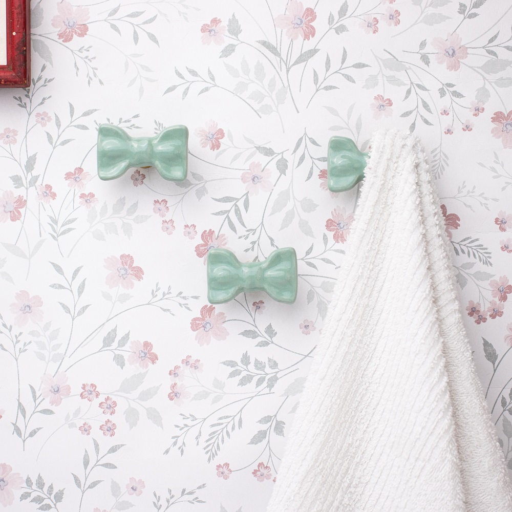 Light Green Ceramic Bow Modern Wall Hook-Pack of 3