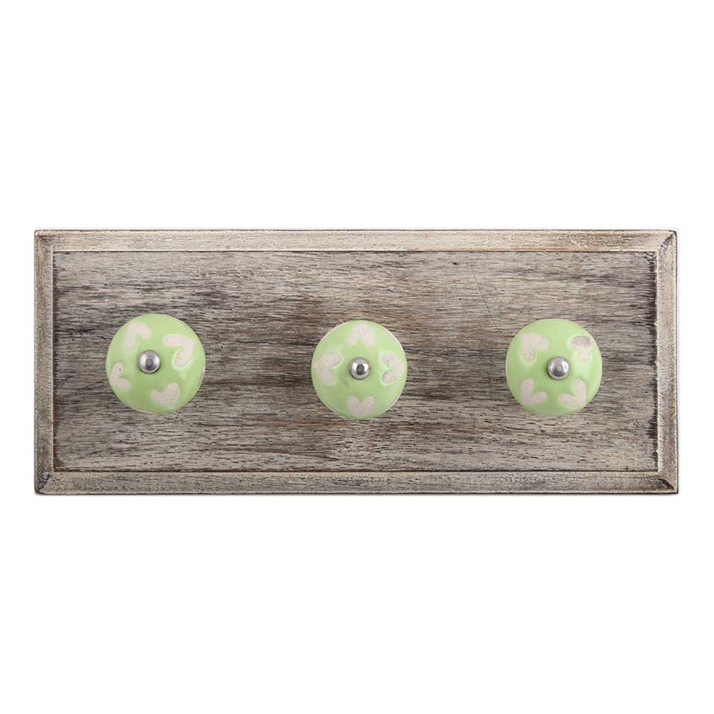 Light Green Etched Ceramic Wooden Hook. A Perfect Complement to the Soft Tone of the Wood are these White Traditional Hat & Coat Hook Made of Genuine Porcelain and Brass. It can be use to Hang Jewellery, Leashes, Towels, Scarves, Light Weight Sweaters, Caps Etc.