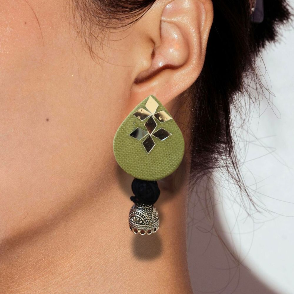 The Light Green Mirror Earrings are a gentle blend of freshness, light, and handcrafted elegance. Crafted on a fabric base, the soothing light green tone brings a calm, nature-inspired feel, while mirror accents reflect light with subtle brilliance. Designed to be lightweight and expressive, these earrings add brightness without overpowering your look. They are ideal for women who prefer graceful statement jewellery rooted in artisanal charm.
