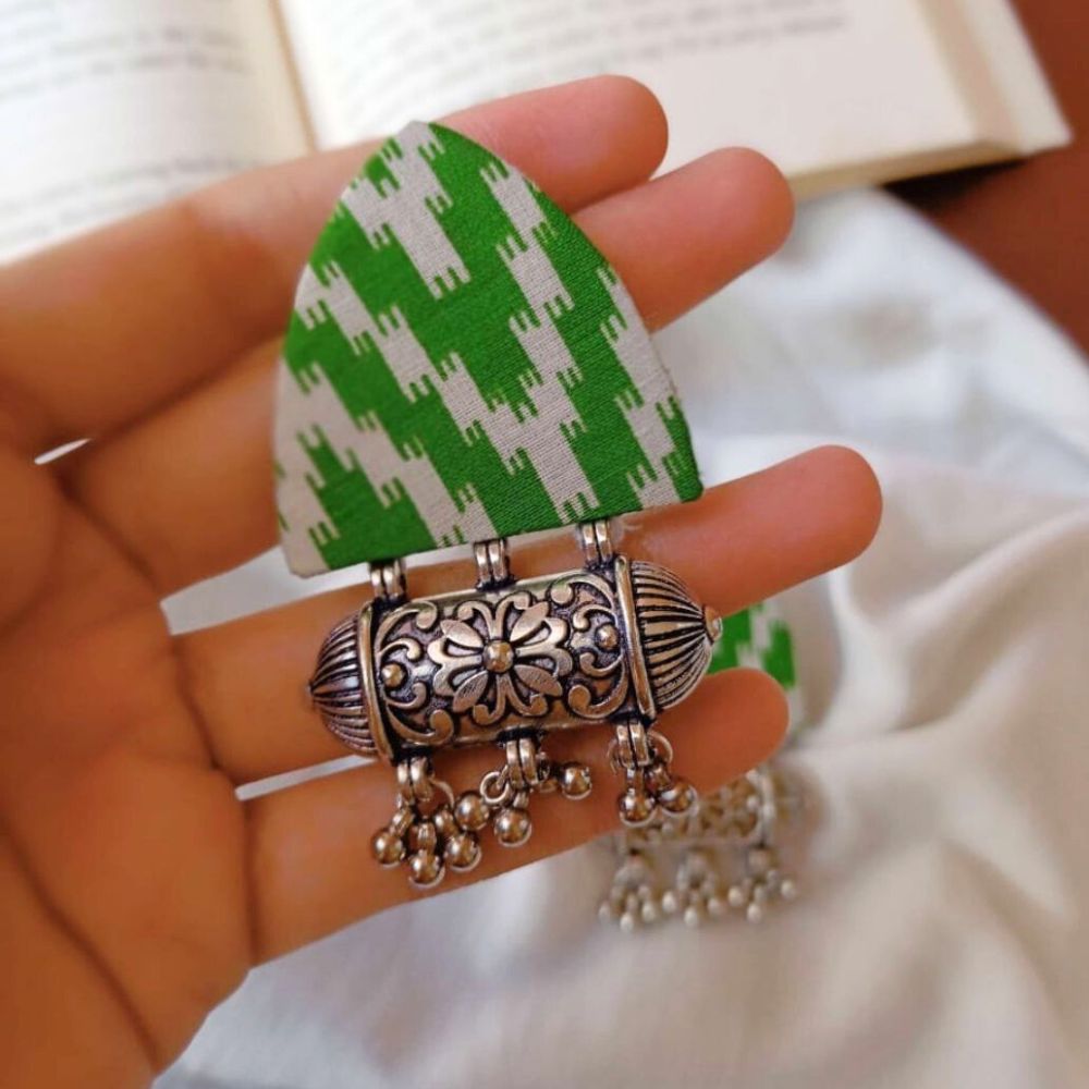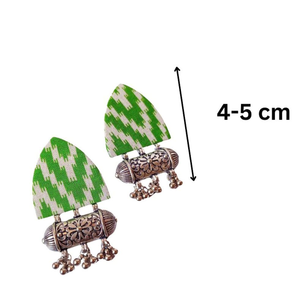 The Light Green Printed Fabric Ghungroo Earrings bring a sense of freshness and gentle movement to traditional Indian jewellery styling. Crafted on a fabric base, the soft light green tone is enhanced with subtle printed detailing that feels calm and artisanal. Finished with ghungroo accents, the earrings come alive with graceful motion and a pleasant rhythm. Lightweight and expressive, they are designed for comfortable wear across festive and everyday occasions.