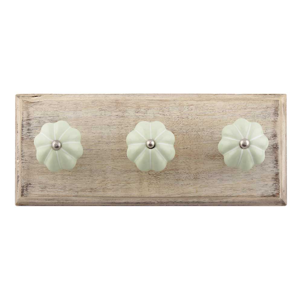 Light Green With Silver Line Ceramic Melon Wooden Hook. A Perfect Complement to the Soft Tone of the Wood are these White Traditional Hat and Coat Hook Made of Genuine Porcelain and Brass. It can be used to Hang Jewelry, Leashes, Towels, Scarves, Light Weight Sweaters, Caps etc.