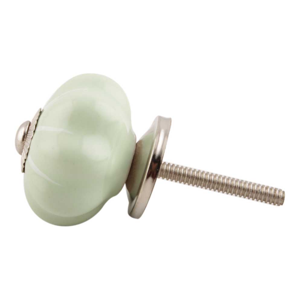 Light Green With Silver Line Medium Ceramic Melon Drawer Knob