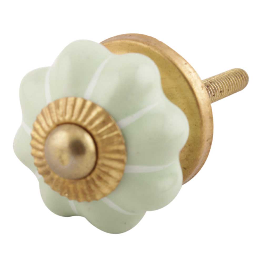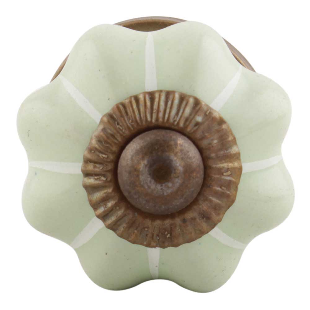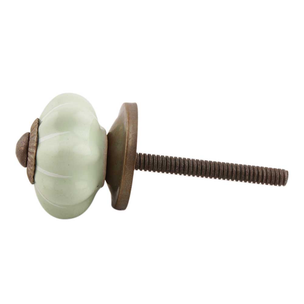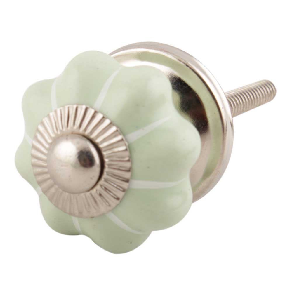 Light Green With Silver Line Small Ceramic Melon Cabinet Knob