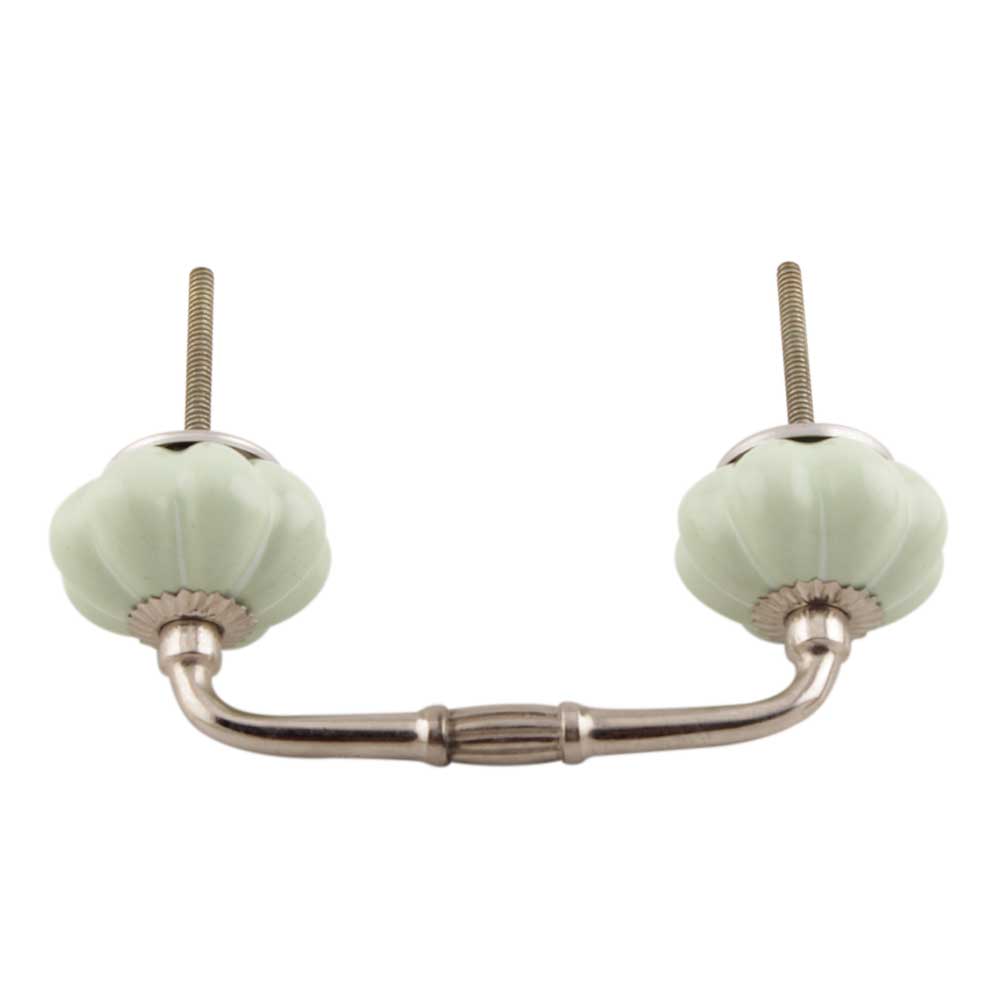Light Green With Silver Line Melon Ceramic Bridge Handle. Ideal for Drawer, Dresser, Cabinet, Wardrobe, Cupboard and Almirah etc.