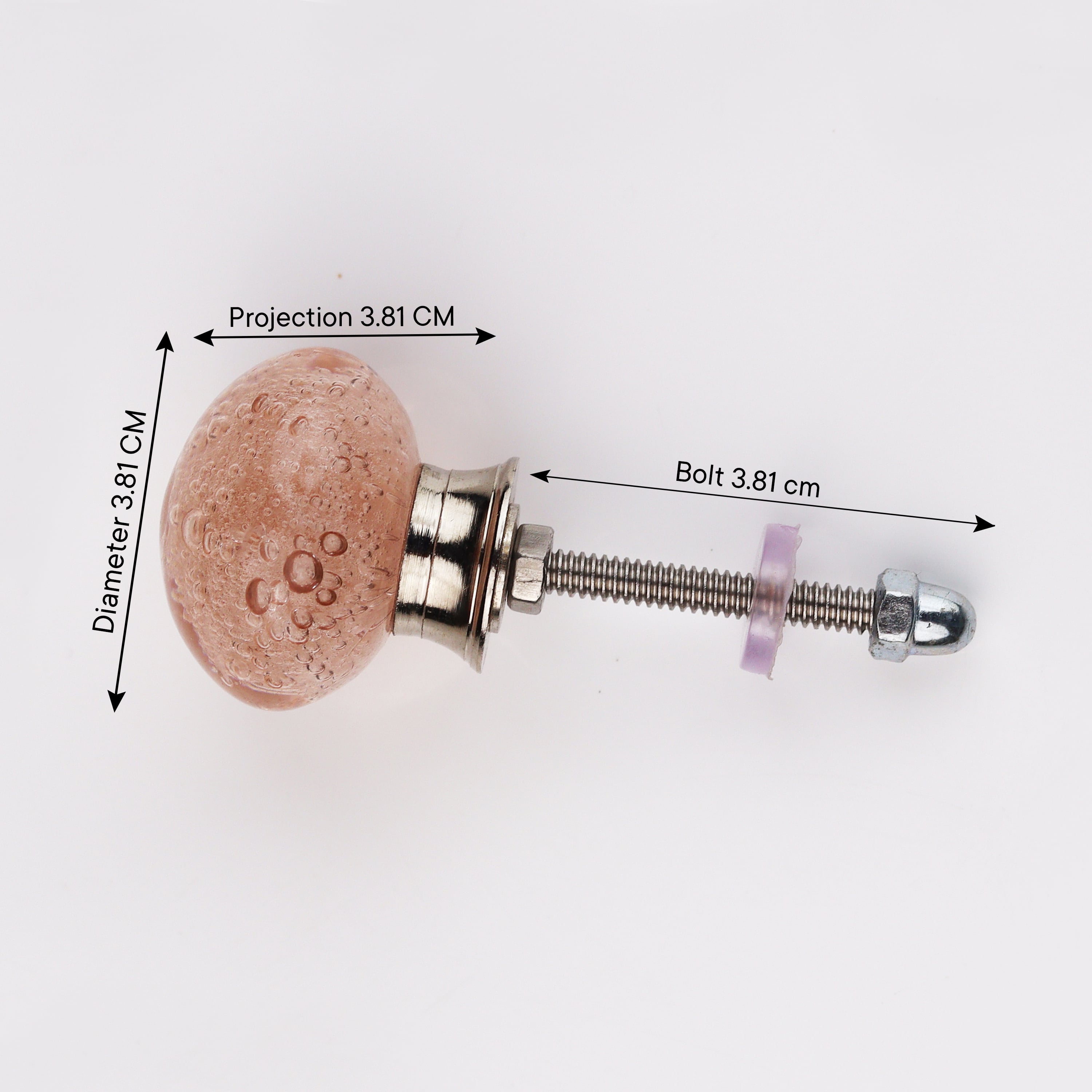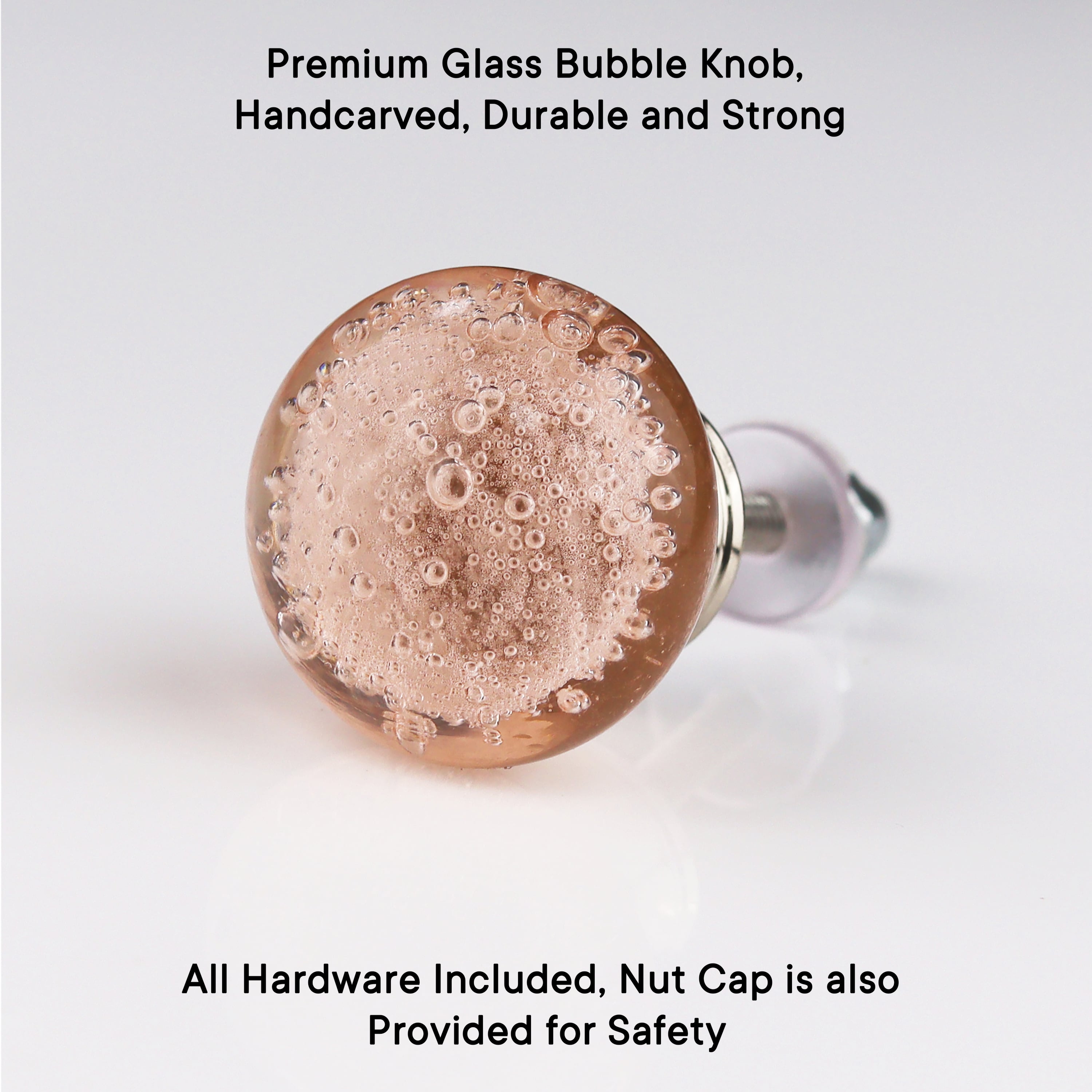 Every knob of Light Pink Bubble knob is made by hand and made from specially developed high quality glass that should last a lifetime while providing that uniqueness of a handmade product. The shine and gloss of the finish, its luminous blush pink colour and spherical form reminisce a classic Look & feel.
