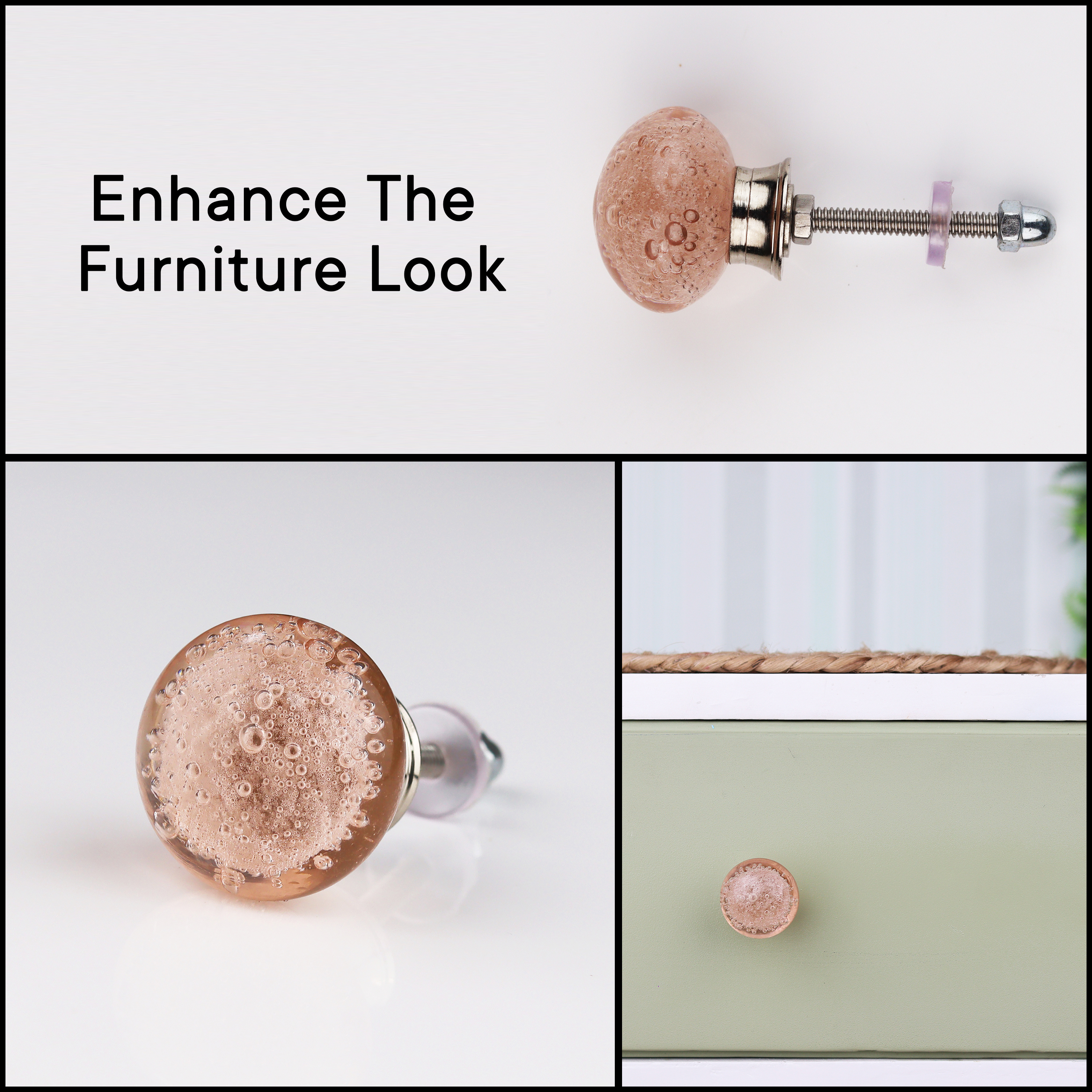 From redoing an antique dresser to refreshing the fresh look of kitchen cabinets or adding the playful and fun atmosphere to the bathroom vanity, a light pink bubble knob will be perfect to add the inviting touch for the lovers of interior design.