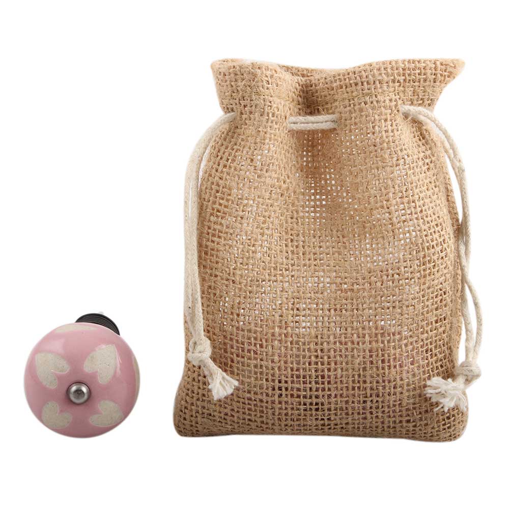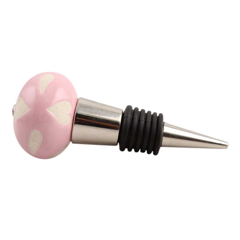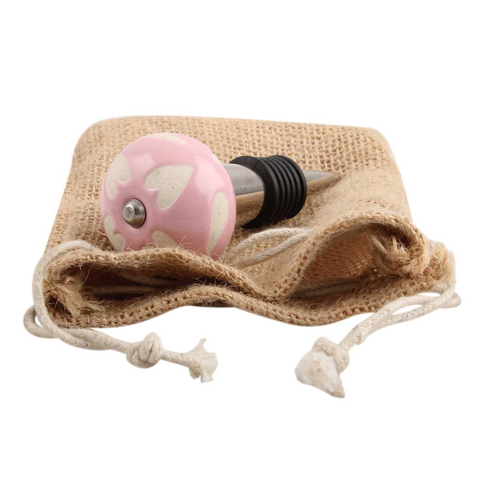 Light Pink Etched Ceramic Wine Stopper.zinc alloy wine bottle stopper with attractive Jute Bag Packaging.