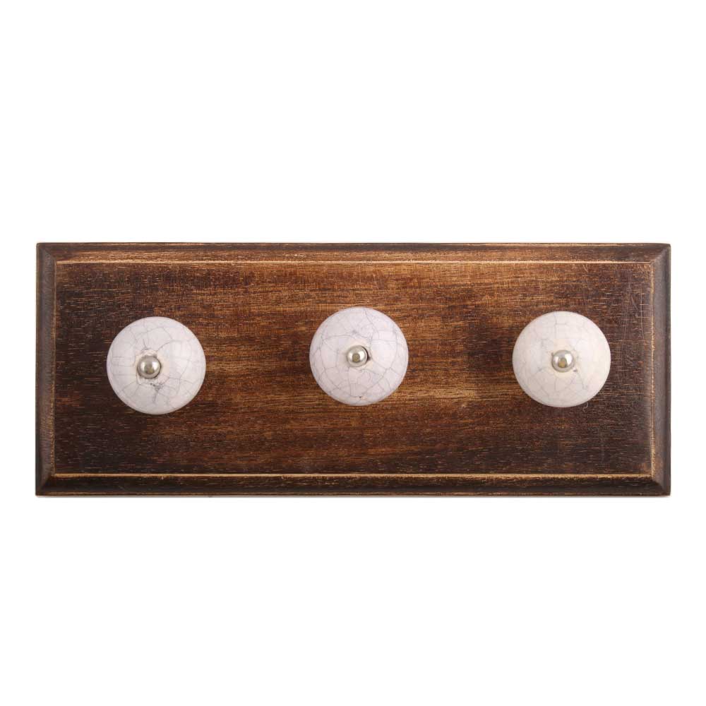 Light Purple Crackle Ceramic Wooden Hook. A Perfect Complement to the Soft Tone of the Wood are these White Traditional Hat & Coat Hook Made of Genuine Porcelain and Brass. It can be use to Hang Jewellery, Leashes, Towels, Scarves, Light Weight Sweaters, Caps Etc.