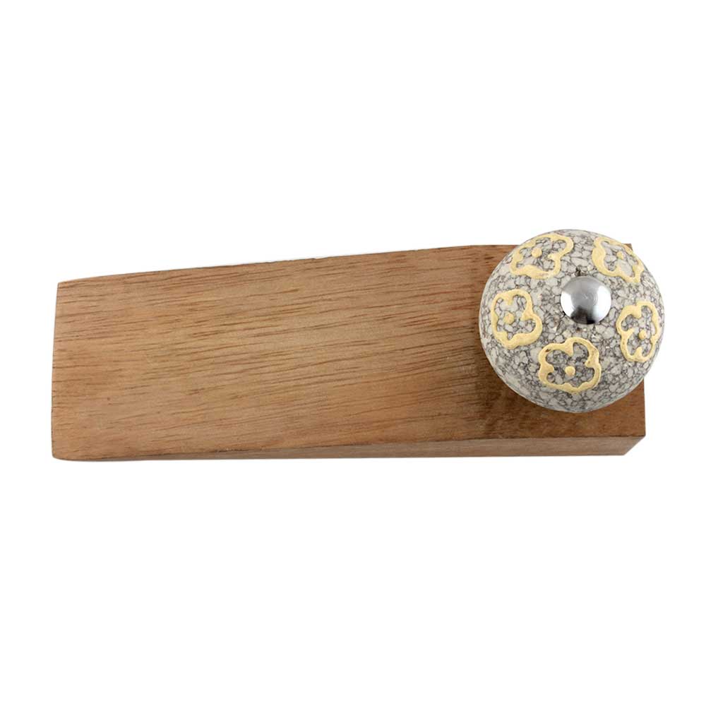 Handmade Ceramic and Wooden Door Stopper.Wooden Door Stopper with a Ceramic Knob to Carry it Easily. This Wooden Door Stopper has Glue Dots under it to Ensure that it does not Slip. It is Handmade by the Craftsmen of India and this Innovative Door Stopper won't Disappoint You.
