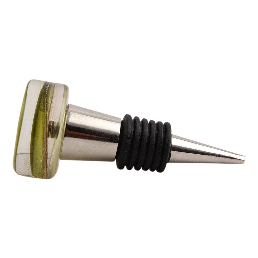 Lime Flat Drawer Glass Wine Stopper.zinc alloy wine bottle stopper with attractive Jute Bag Packaging.
