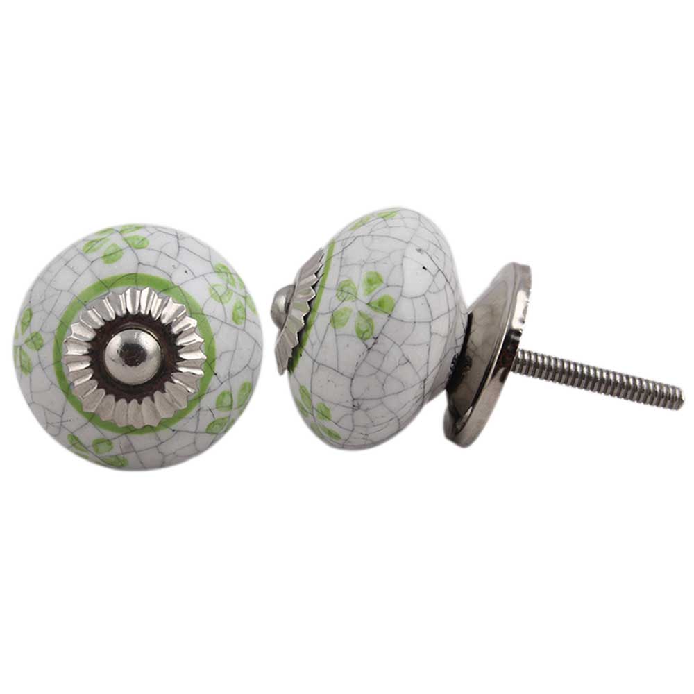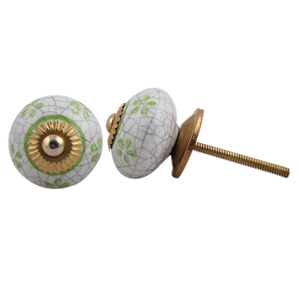 Lime Floral Crackle Ceramic Dresser Knob. Ideal for Drawer, Dresser, Cabinet, Wardrobe, Cupboard and almirah