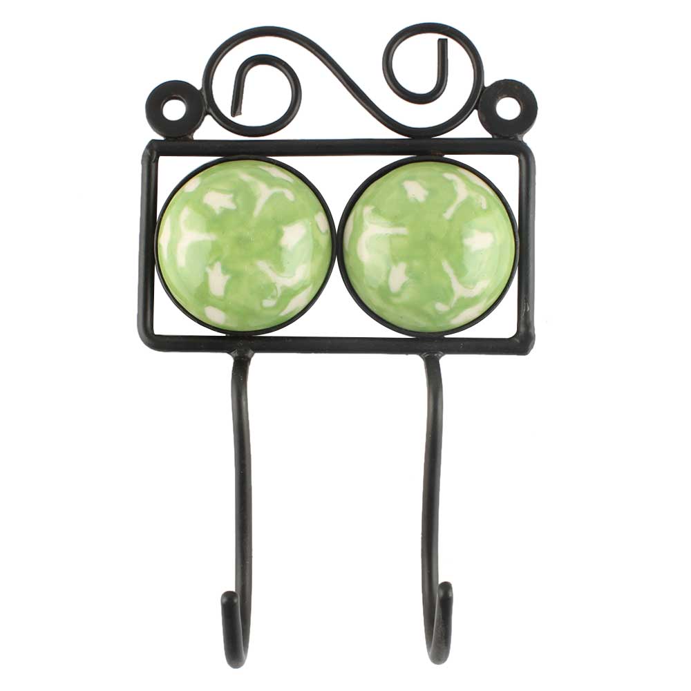 Lime Green Ceramic Tile Hook. When Put on Wall or Cabinet It is An Art in Itself. The Metal Part of this Hook is Black Powder Coated.