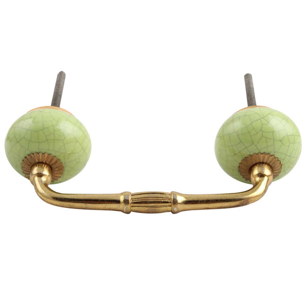 Lime Green Crackle Ceramic Bridge Handle . Ideal for Drawer, Dresser, Cabinet, Wardrobe, Cupboard and Almirah etc.