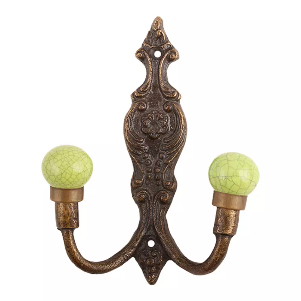 Lime Green Crackle Ceramic Iron Hook. When Put on Wall or Cabinet It Gives A Sturdy Look. This Hook is Strong Enough to Hold Your Cloths, Keys, Tea Cups, Coffee Mugs, Hand Towels Etc