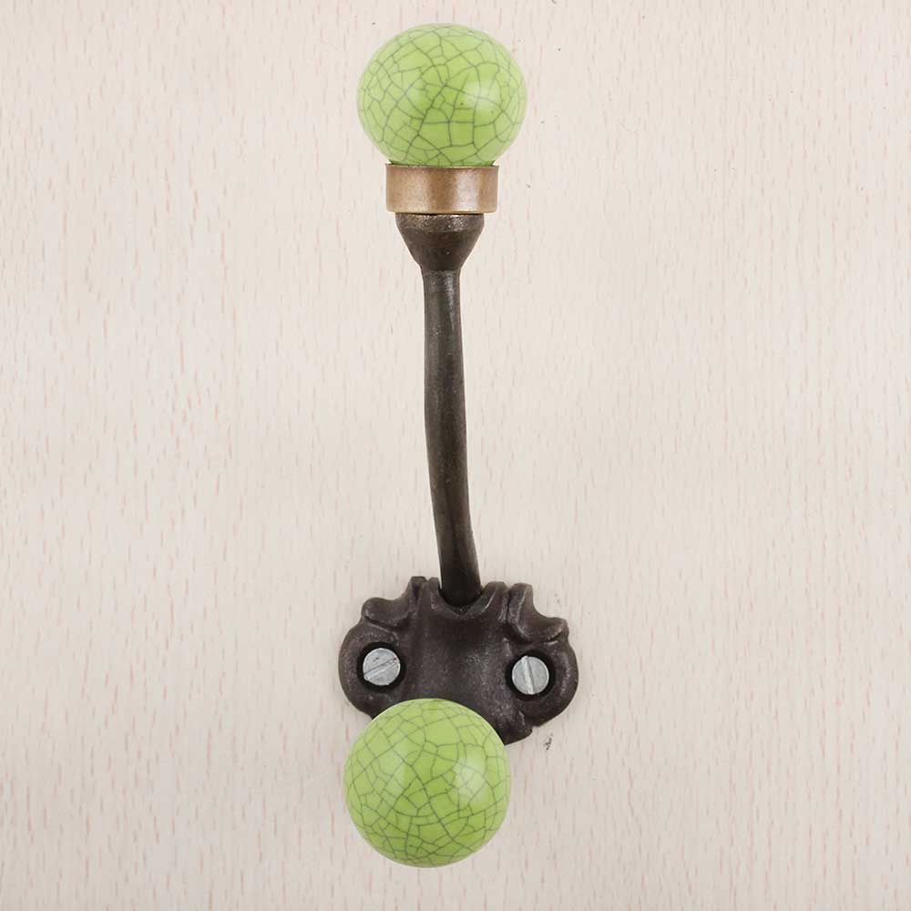 Lime Green Crackle Iron Hook-Ehg-88. When Put on Wall or Cabinet It Gives A Sturdy Look. This Hook is Strong Enough to Hold Your Cloths, Keys, Tea Cups, Coffee Mugs, Hand Towels Etc.