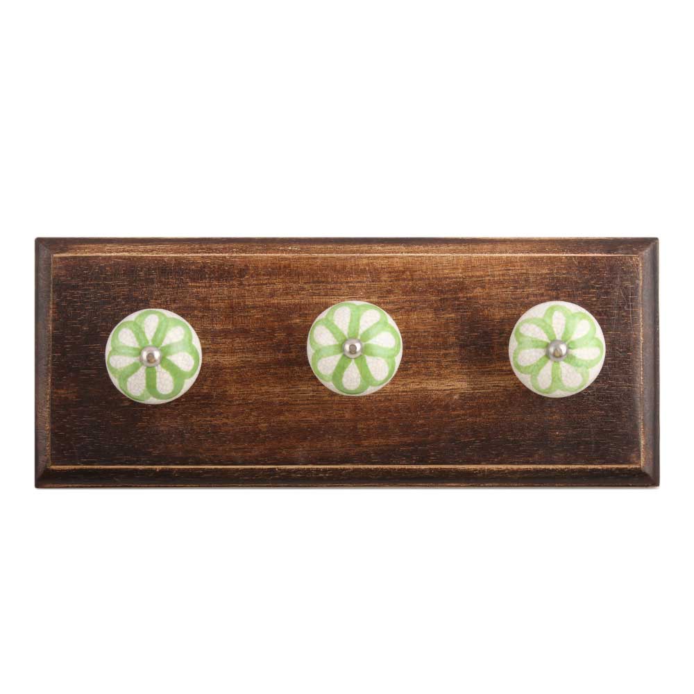Lime Green Floral Crackle Ceramic Wooden Hooks