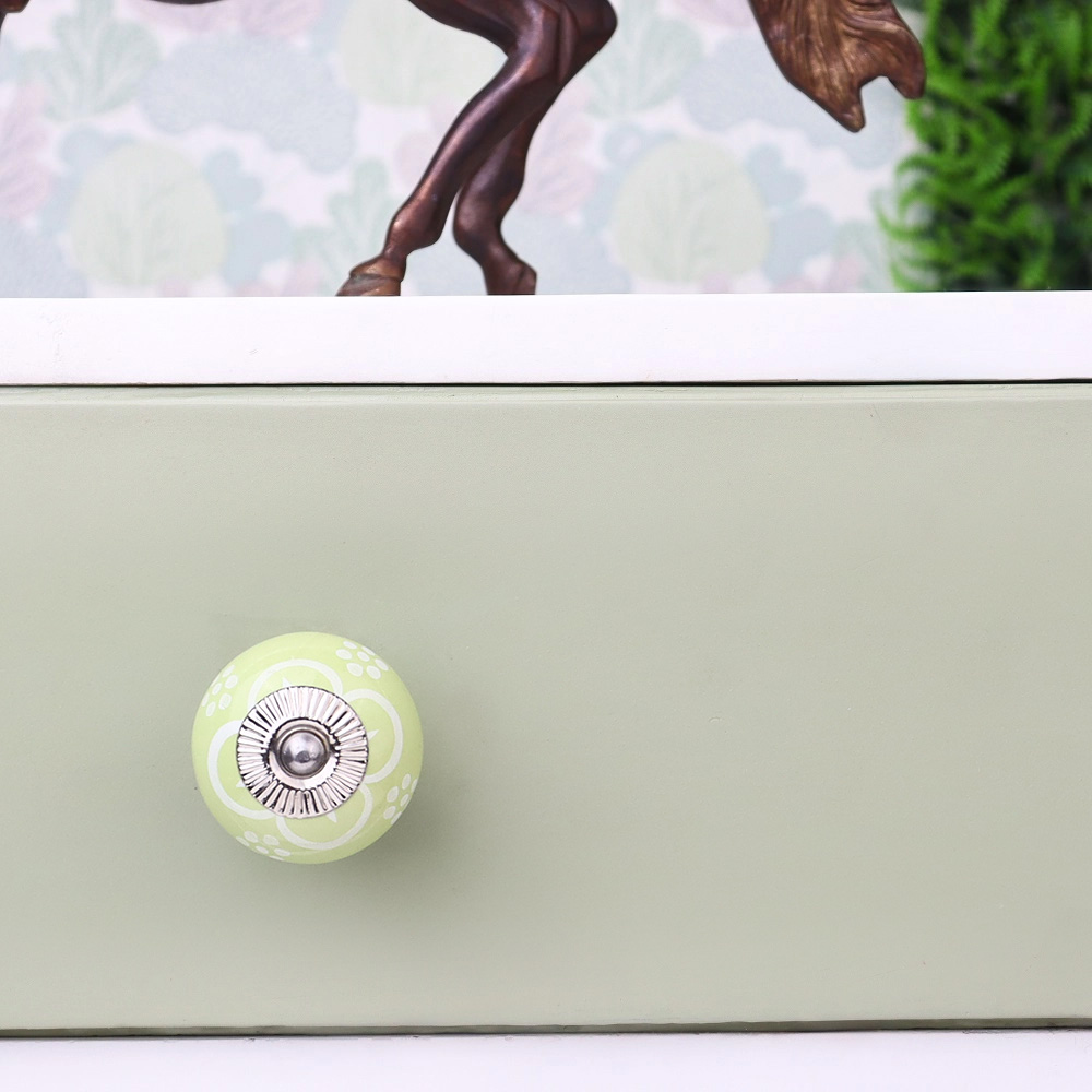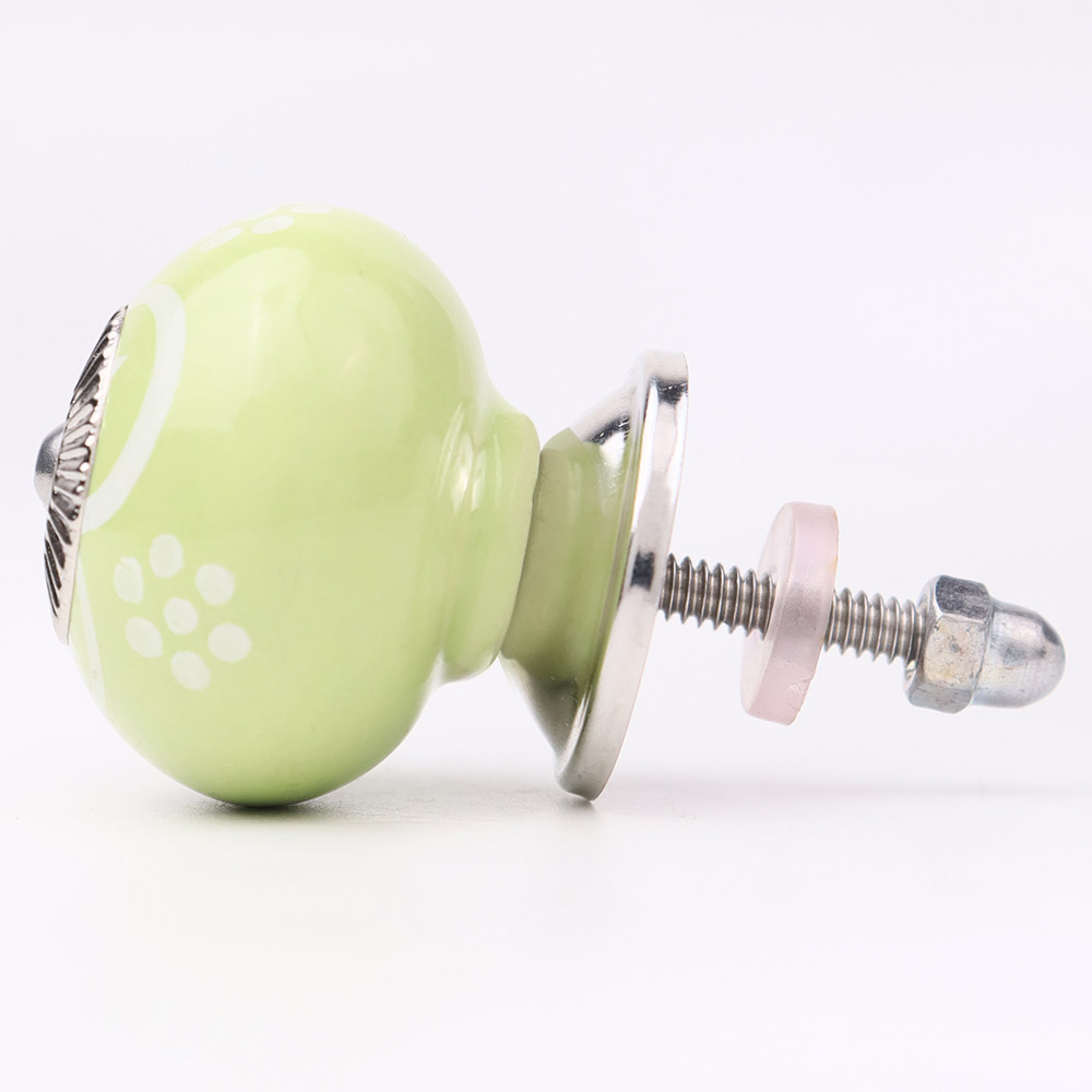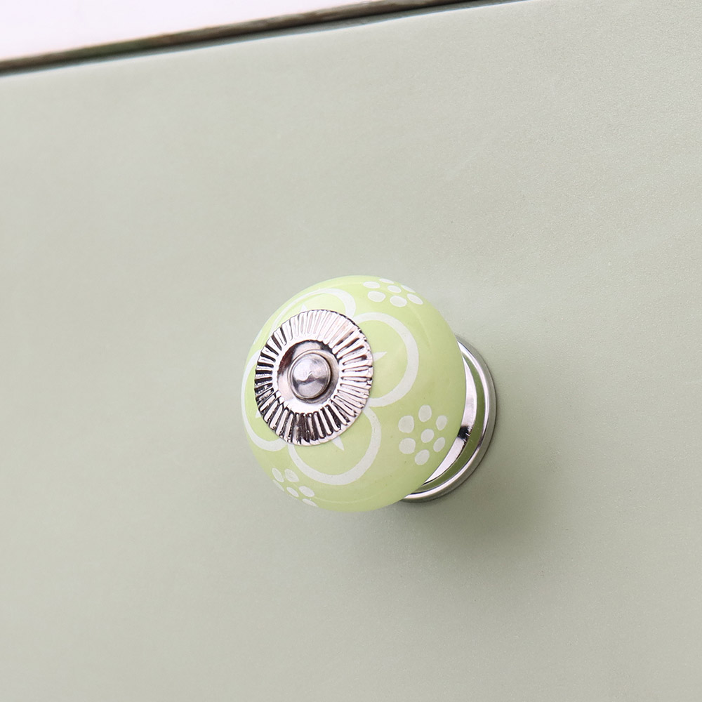 Lime Green Floral ceramic knob. Ideal for kitchen cabinets, kitchen drawers, dining room, bed room, chest drawers, dressing tables, almirah