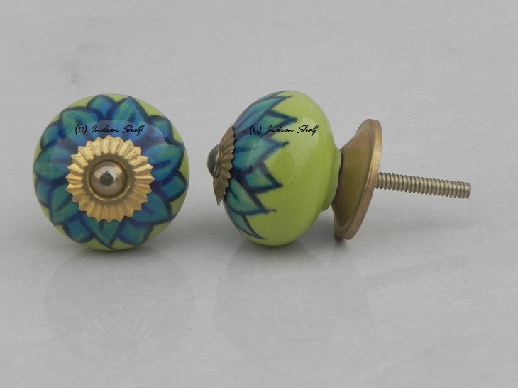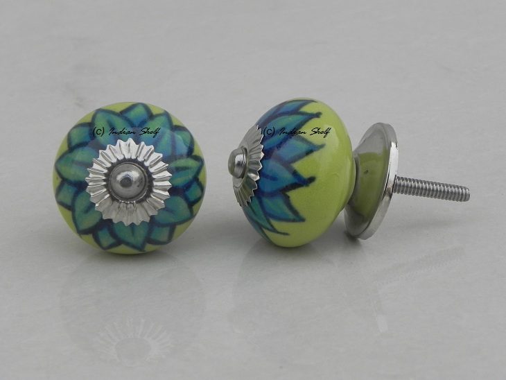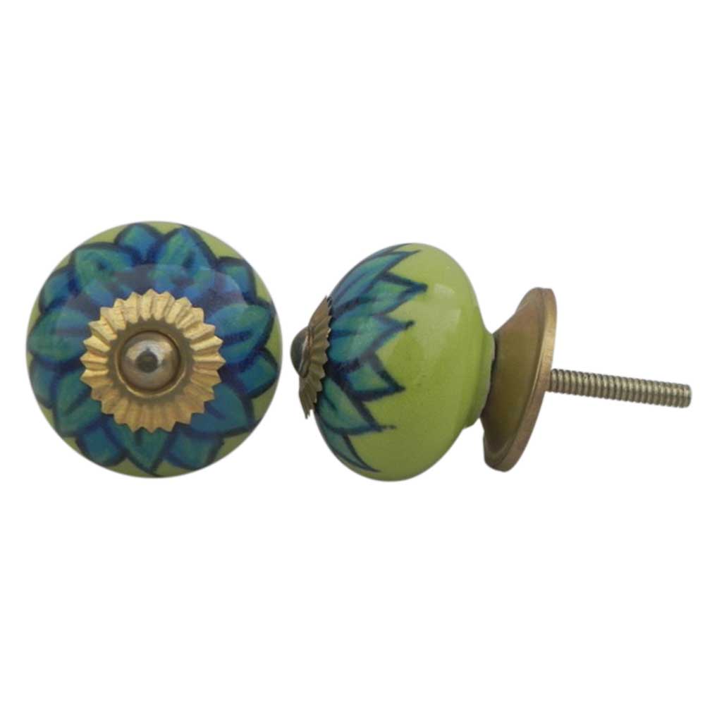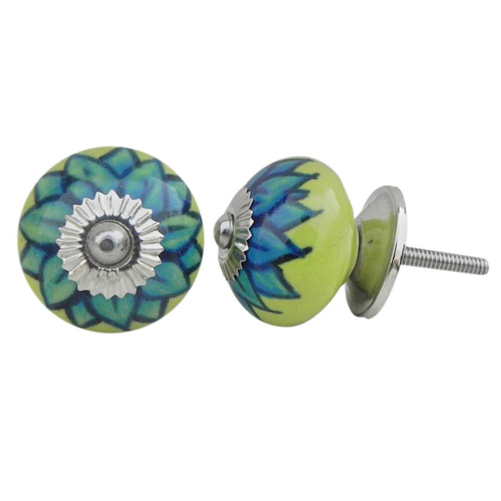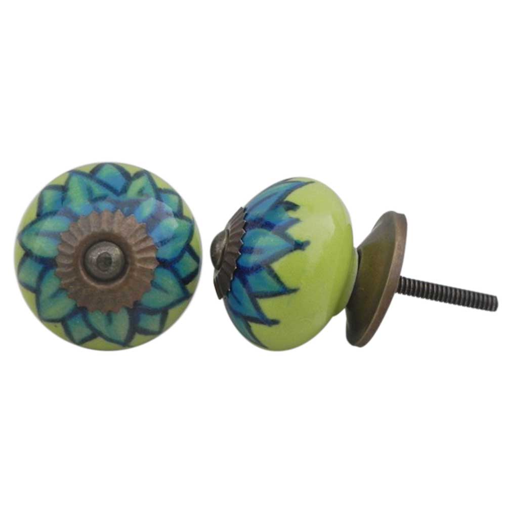 Lime Green Sunflower ceramic knob. Ideal for kitchen cabinets, kitchen drawers, dining room, bed room, chest drawers, dressing tables, almirah