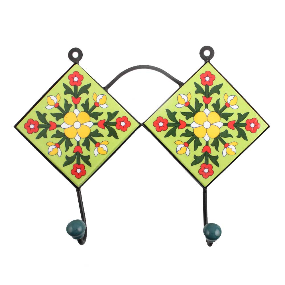 Lime Green Yellow Floral Tiles Hooks