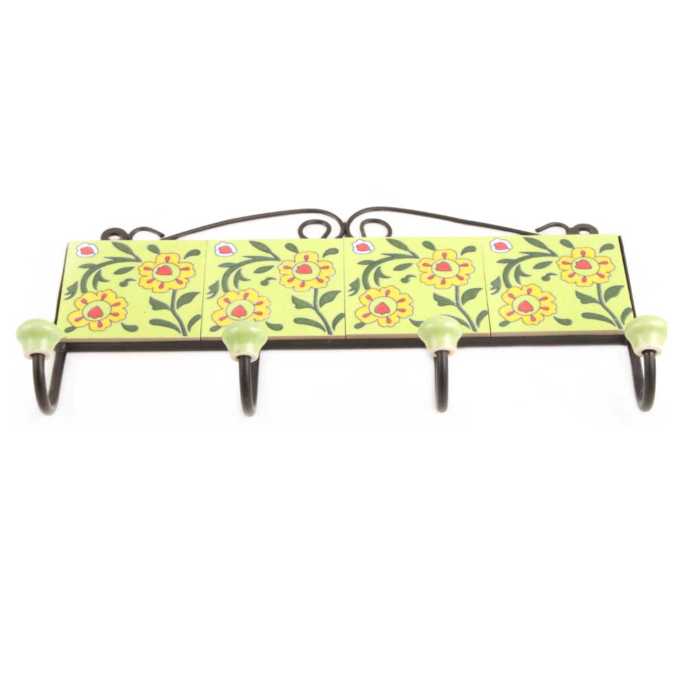 Lime Green Yellow Sunflower Tiles Hooks .When put on wall or cabinet it is an art in itself. The metal part of this hook is black powder coated.