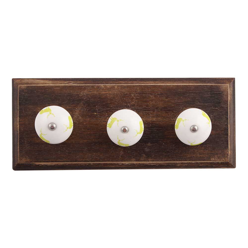 Lime Standing Rein Deer Pattern Ceramic Wooden Hook. A Perfect Complement to the Soft Tone of the Wood are these White Traditional Hat & Coat Hook Made of Genuine Porcelain and Brass. It can be use to Hang Jewellery, Leashes, Towels, Scarves, Light Weight Sweaters, Caps Etc.