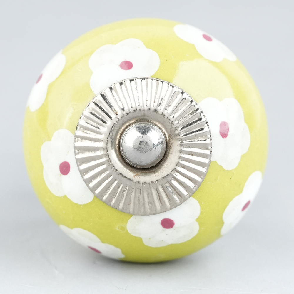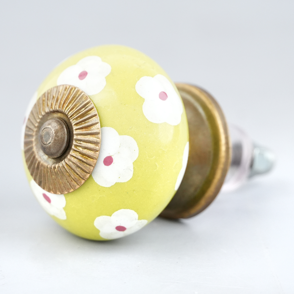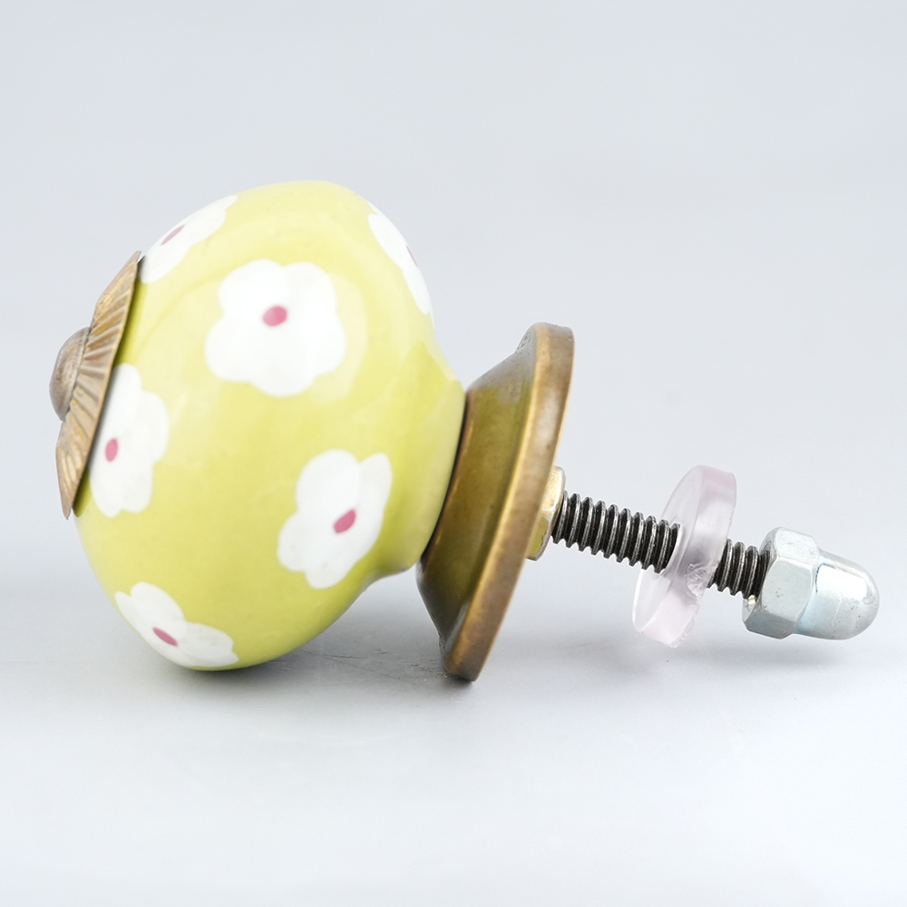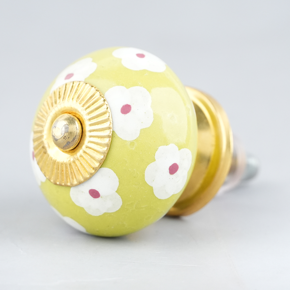 Lime White Flower Floral Dresser Knob