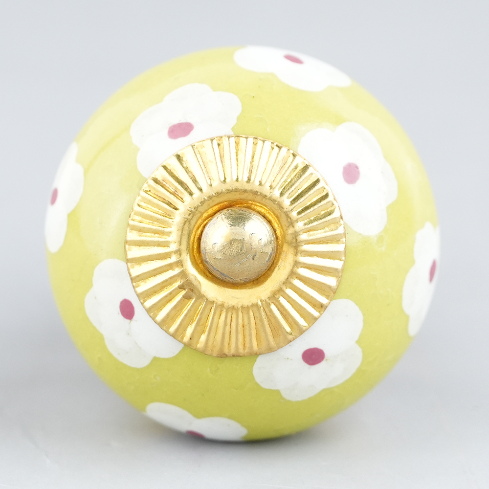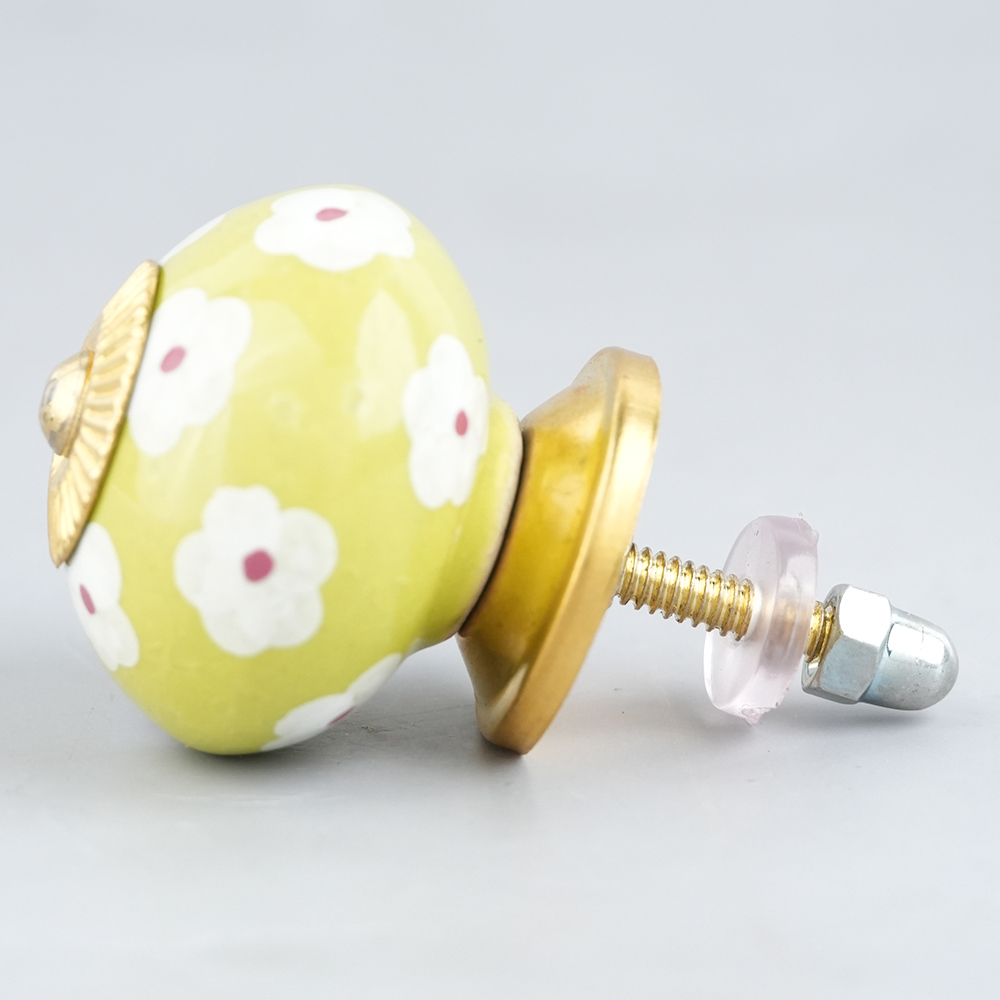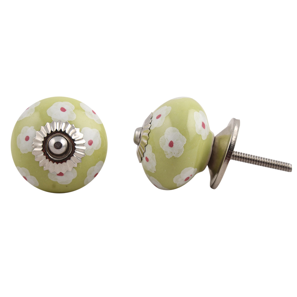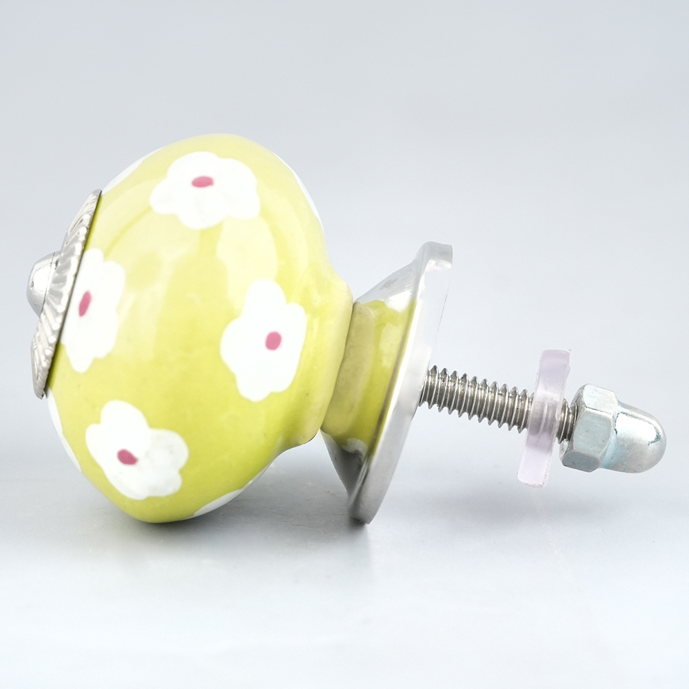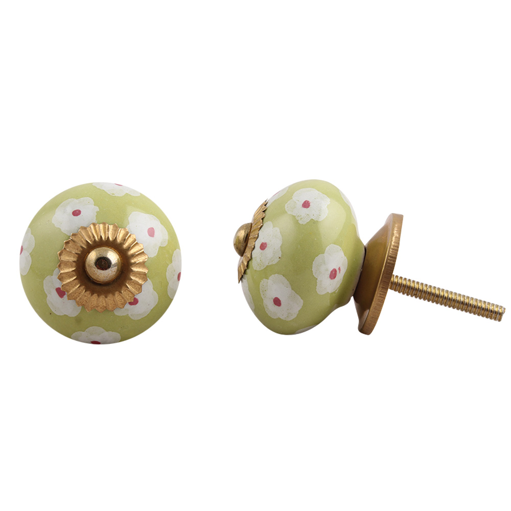 Lime White Flower Floral Dresser Knob