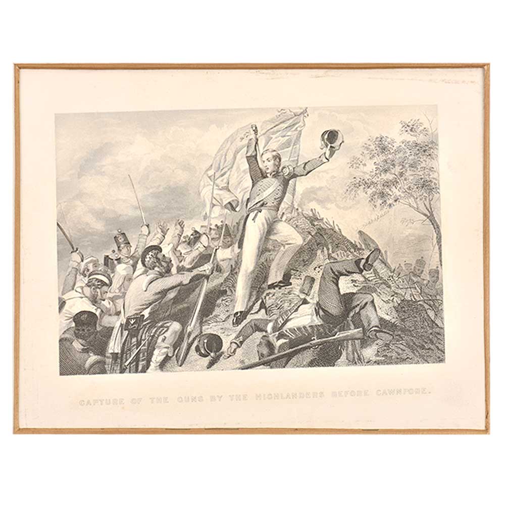 • Lithograph Capture Of The Guns By The Highlanders Before Cawnpore