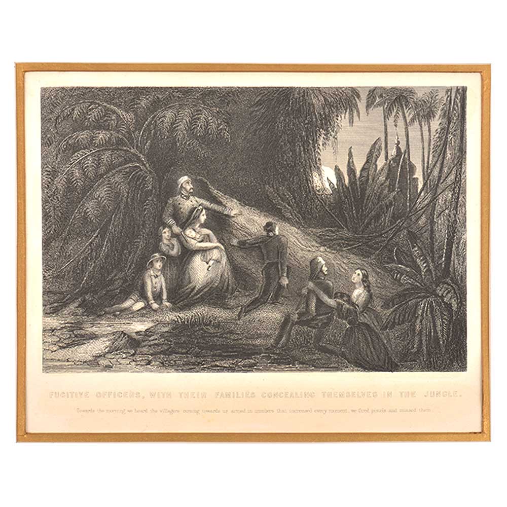 Fugitive British officers and their families attacked by mutineers the Fugitive Officers, with their Families were seen concealing themselves in the Jungle.The Indian Rebellion of 1857 was a major, but ultimately unsuccessful, uprising in India in 1857–58 against the rule of the British East India Company.