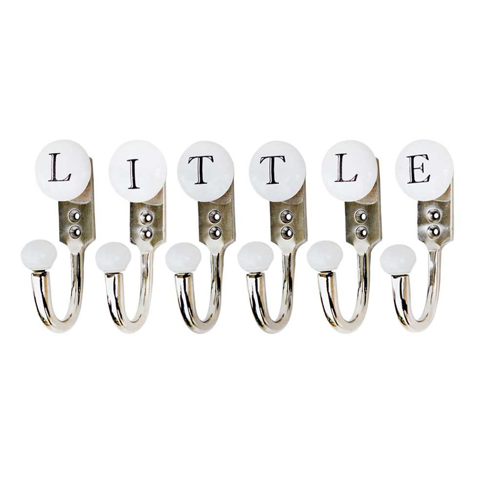 LITTLE white and black alphabet hooks (combo pack). When put on wall or cabinet it is an art in itself. This hook is strong enough to hold your keys, tea cups, hand towels, cloths etc.