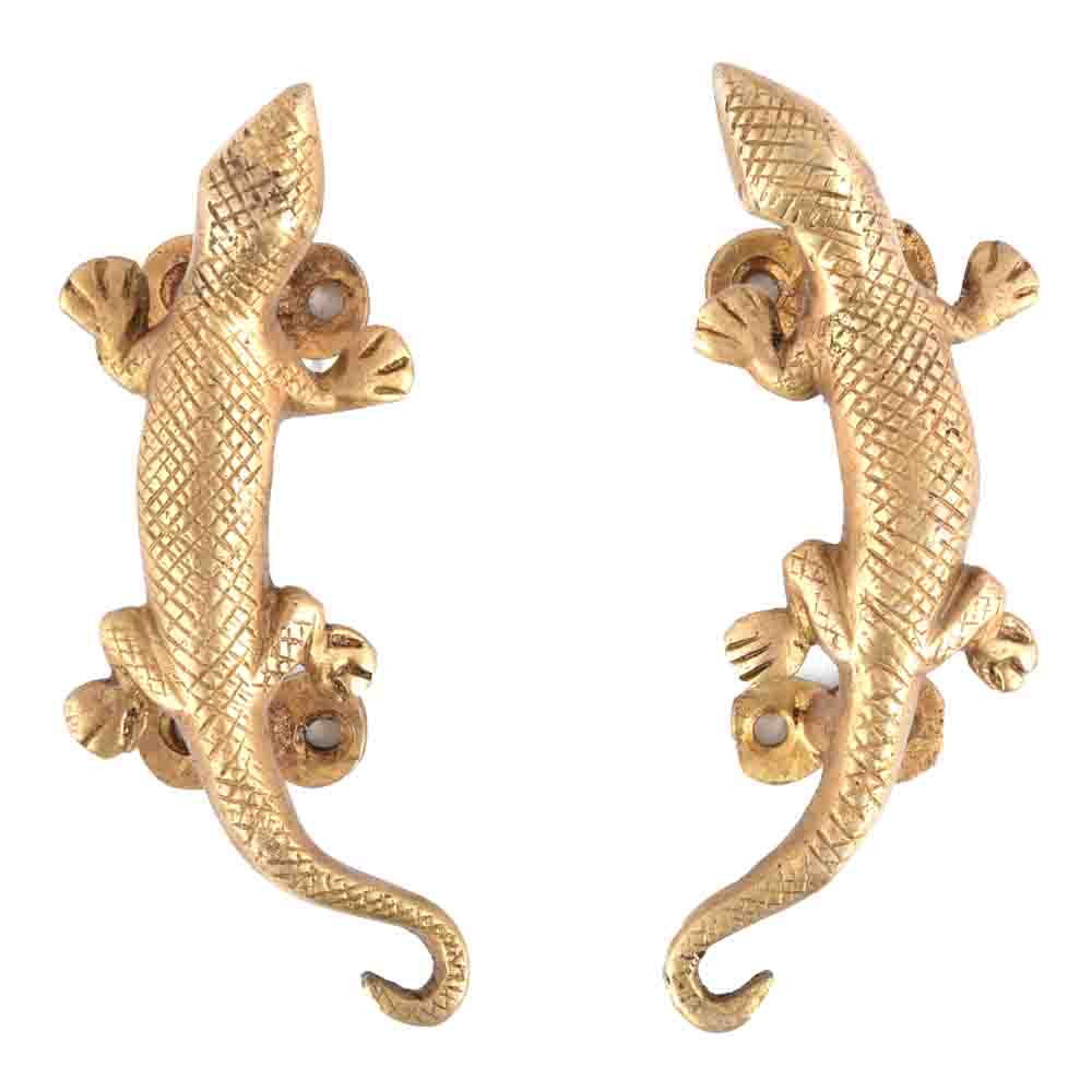 The timeless lizard motif and luxurious golden brass finish will continue to enhance your furniture for years. The sturdy brass construction ensures that these pulls will withstand daily use, offering a reliable and stylish hardware solution.