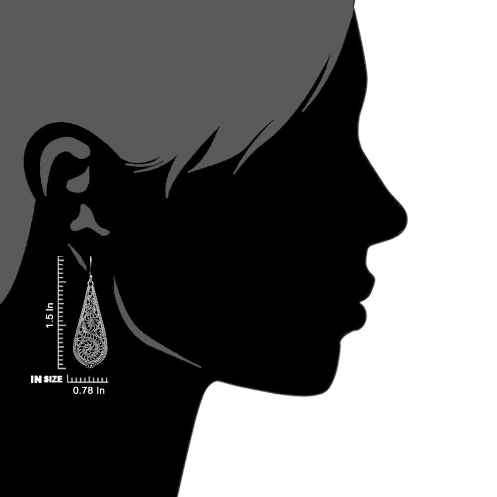Add a festive element to your outfit with these charming sterling silver earrings handcrafted by artisan of India. . The design features beautiful, double-sided Scroll Filigree Design that is round in shape. A wonderful accessory that will compliment both your style and natural beauty.