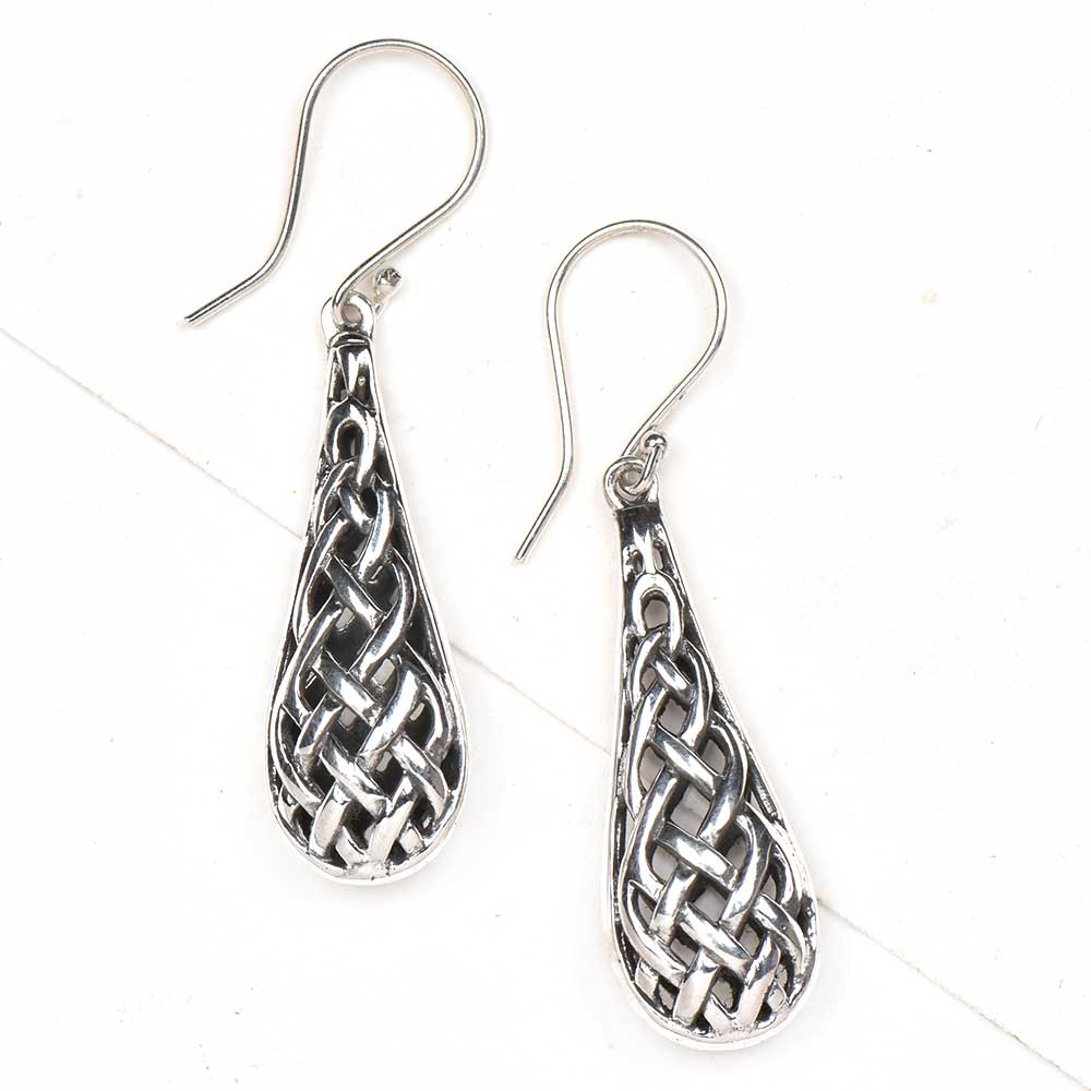 Long Tear Drop Celtic Knot 92.5 S Silver Drop Earrings